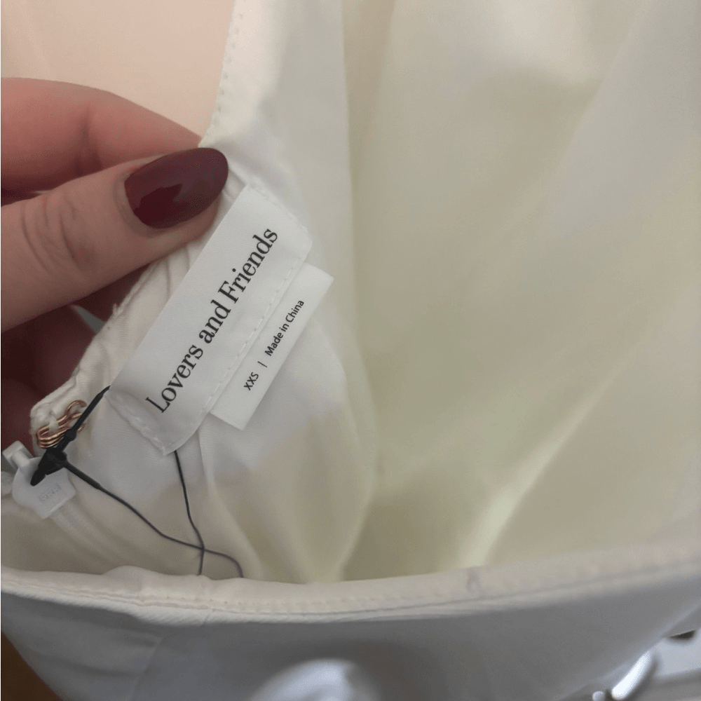 Lovers + Friends Gianni jumpsuit in white size xxs NWT Main material: 100% Polyester Lining: 97% Polyester, 3% Spandex Made in China dry cleaning Concealed zipper at the back Adjustable shoulder straps Midweight crepe fabric with plunging back and split cuffs Revolve item no. LOVF-WC301 Manufacturer Article No. ACJS356 S23