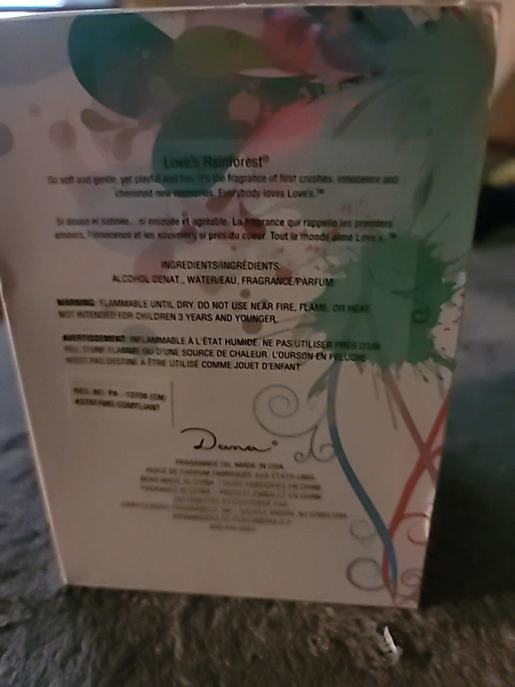 Love's Rain Forest By Dana .69 Oz Cologne Mist And Teddy Bear Box Set.