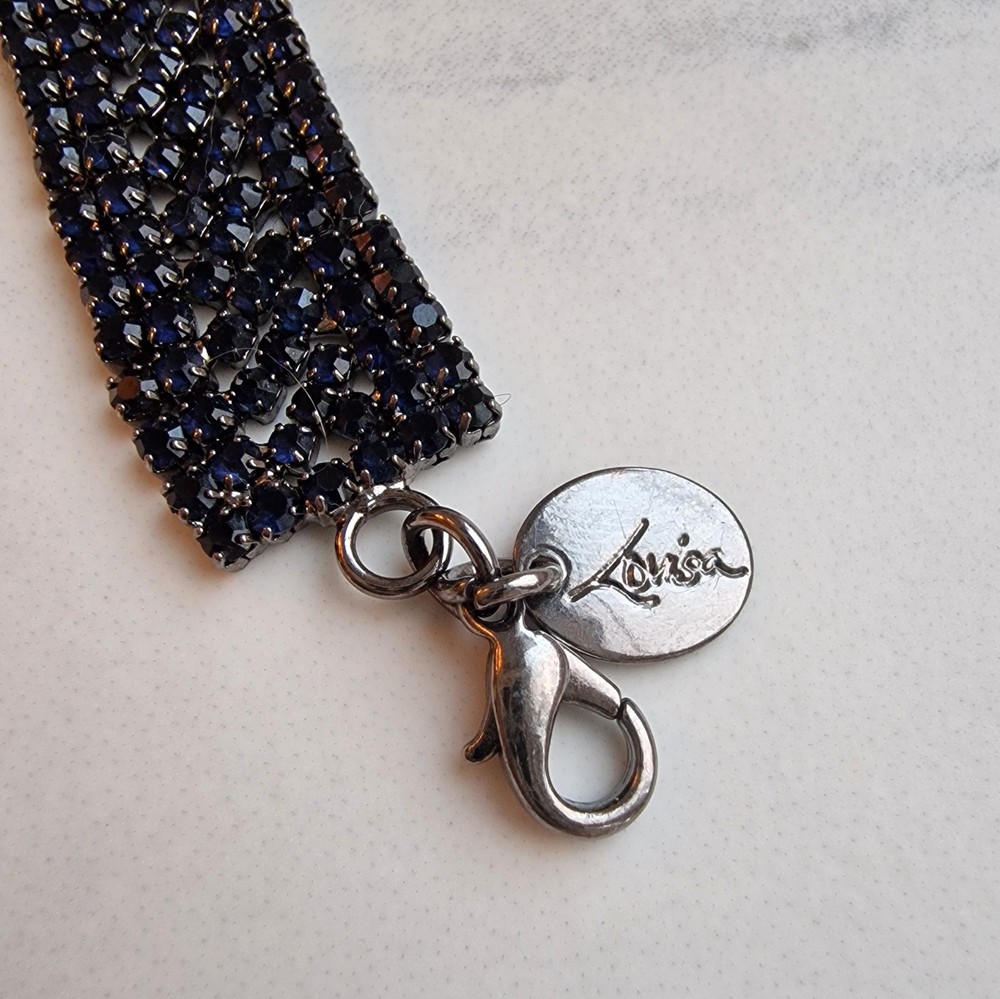 The Lovisa Black Crystal Diamanté Choker Necklace is a stylish piece of costume jewellery measuring 30-40cm in length. The choker style necklace features simulated black glass crystals set in a prong setting, with a lobster closure for easy wearing. This elegant accessory from the brand Lovisa is perfect for adding a touch of glamour to any outfit, making it a versatile and eye-catching piece for any jewellery collection.