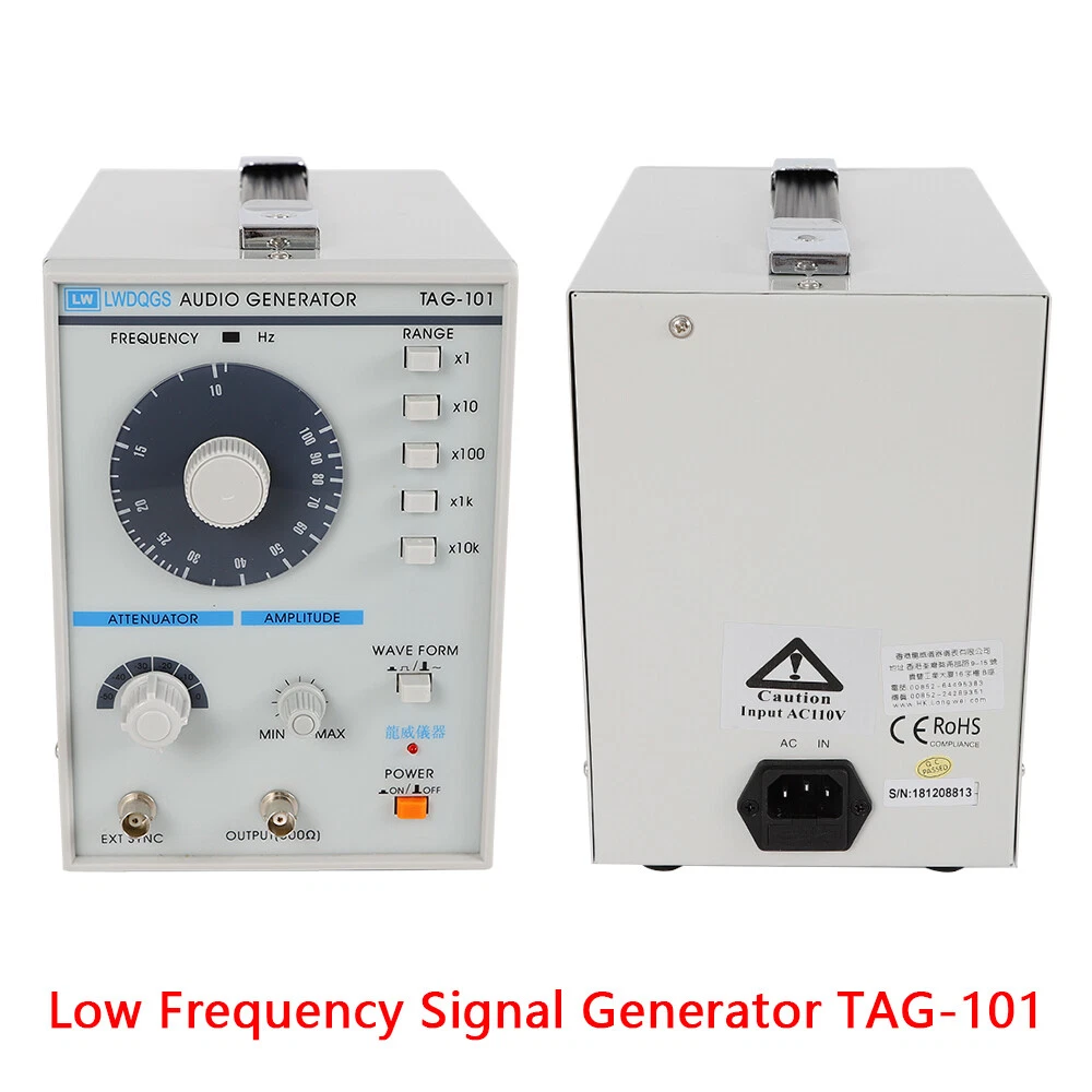 Audio Signal + Generator Signal Source Low Frequency Signal Generator 10Hz-1MHz Low Frequency Audio Signal Generator Power cord Test clip + Instruction manual Specifications: Frequency range: X1 range: 10Hz-100Hz X10 range: 100Hz-1KHz X100range: 1KHz-10KHz X1K range :10KHZ-100KHz X10K range: 100KHz-1MHz Sine wave characteristics Output voltage: 5V rms or more Output distortion: 400Hz-20KHz, 0.1% or less (X100 range for 1KHz) 50Hz-500KHz 0.5% or less OutputFlatness: ±1.5 dB (refer to 1KHz) Square wave characteristics: Output voltage: 10Vp.p or more Rise time: 0.25 us or less Duty ratio: 50%±5%(referto1KHz) External synchronization characteristics Range±3% of oscillator frequency Inpu impedance: 10K approximate Maxi mun input: 10V rms Output characteristics: Impedance: 600Ω±10% Attenuator: 0dB, -10dB, -20dB, -30dB, -40dB, and -50dB in 6 steps (accuracy +1 dB at 600Ω load) Input: AC 110V or 220V, 50/60Hz Consumption: 5 Watt Dimension: 142(w)*233(D)*197(H) mm Weight: 3.5Kg Highlights: Reliable circuitry insure high stability and accuracy Easy operation on vertical type panel assembling Frequency range from 10Hz to 1MHz selectable in 5 ranges are calibrated with single-scale graduations. More than 5Vrms at no load and more than 2.8Vrms on 600Ω loading (sine wave). Output level can be adjusted by a 10dB-step, 6 range attenuator and a level adjuster. Sine wave and square waves is available. Synchronizing input terminal Accessories: 1pc Power cord 1pc Test clip 1pc Instruction manual Payment Delivery details Terms of sales About us Contact us Payment We accept ebay payment 。 Fees such as import duties, taxes are not included in the item price or shipping costs. These charges are the buyer's responsibility. Delivery details Shipping: 2-9 working days to: USA Terms of sales We maintain high standards of excellence and strive for hundred percent customer satisfaction. Feedback is very important to us. We hope that you contact us immediately before you give neutral or negative feedback, so that we can address your concerns. It is impossible to address issues if we do not know about them! About us Your satis faction is our ultimate goal. We work hard to earn your trust and future business. Our certified technicians have tested each item before shipping. The unit comes with 1 year limited warranty on all manufacturing defects. a) If you receive a defective item, you may return it or ask for a discount. Please contact us within 14 days after you receive the package. b) What you returned must be intact and in its original packaging as re? u. Customer is responsible for shipping costs of the returned item. c) We will cover the cost of shipping back t with the shipping rate indicated in the registration page. We will send you a new unit or refund the full payment you paid. Thank you. Contact us Business Hour Business Hour: Monday To Friday: 8:30 AM to 5:00 PM (Beijing China time) Due to time zones, our reply to your questions may not be immediately. But within above working time, we will reply your email within 24 hours. If it's non-workdays, please kindly be patient and wait till Monday. Please contact us with ebay message. Please feel free to contact us if you have any questions. Monday To Friday: 8:30 AM to 5:00 PM (Beijing China time) Due to time zones, our reply to your questions may not be immediately. But within above working time, we will reply your email within 24 hours. If it's non-workdays, please kindly be patient and wait till Monday. Please contact us with ebay message. Please feel free to contact us if you have any questions. Features1 stable performance,Durable Current Rating Does Not Apply EAN Does Not Apply Transportation does not include canarias Manufacturer Warranty Yes Brand Unbranded Features Fast shipping ISBN Does Not Apply OE/OEM Part Number Does not apply MPN ( MPN ) n/a UPC Does not apply System Configuration Does Not Apply MPN Does Not Apply Features 4 Fast shipping Features 1 stable performance,Durable Custom Bundle No Feature * Convenient Use,Unique Appearance,reliable quality Matetial1 high quality &Duable Signal Generator Type Audio Signal Generator Output Resistance 600Ω±10% Type TAG-101 Frequency Range 10Hz -1MHz Country/Region of Manufacture China Bundle Listing Yes