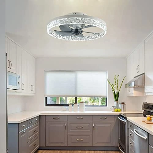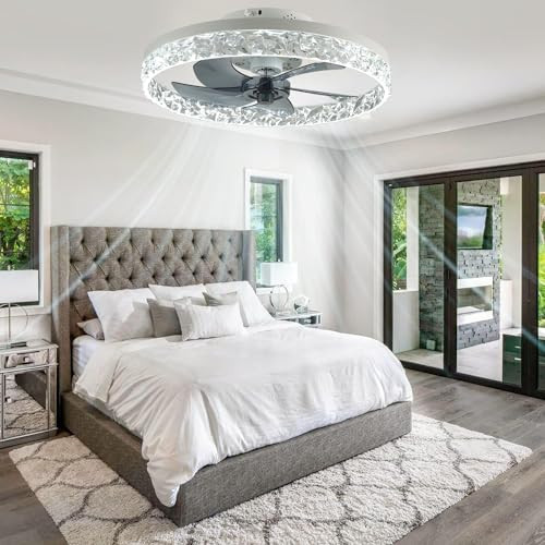 $ 110.8718-Inch Modern Black Crystasl Bladeless Ceiling Fan with Integrated Light
