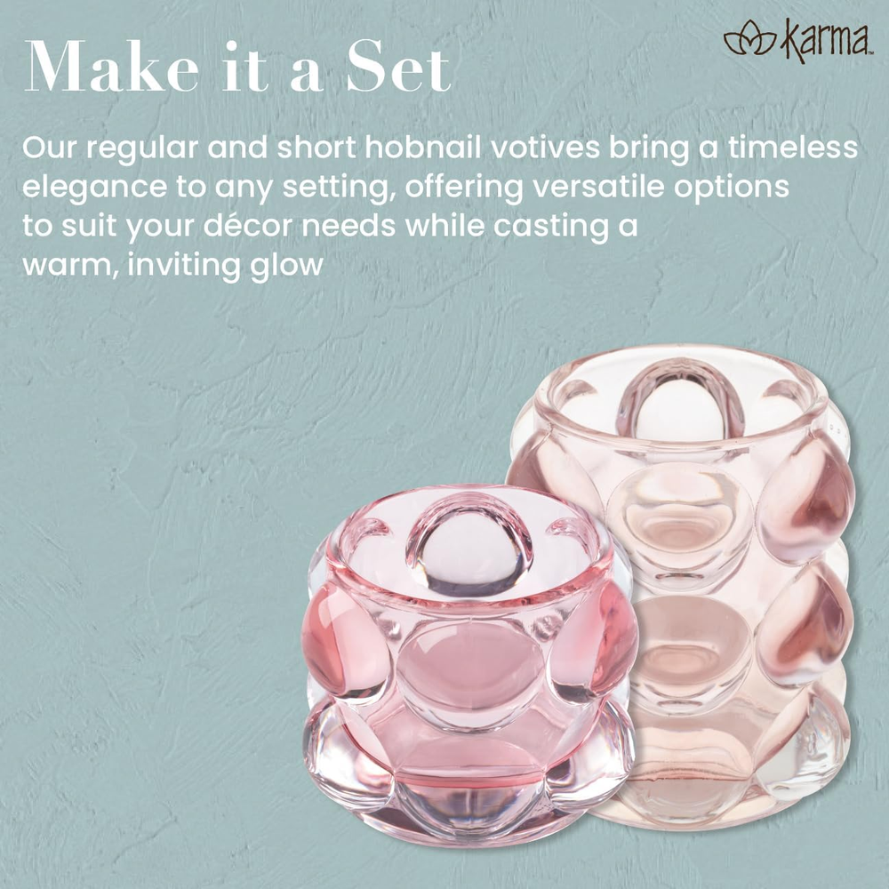 Absolutely love this adorable votive holder! The delicate hobnail design adds such a charming touch to my decor, and the compact size fits perfectly on my nightstand. It holds tealights beautifully and catches the light in the most elegant way. The glass is sturdy and easy to wipe clean—no fuss! The variety of colors makes it easy to match any style. Such a simple yet stunning piece that instantly elevates my space. Highly recommend!