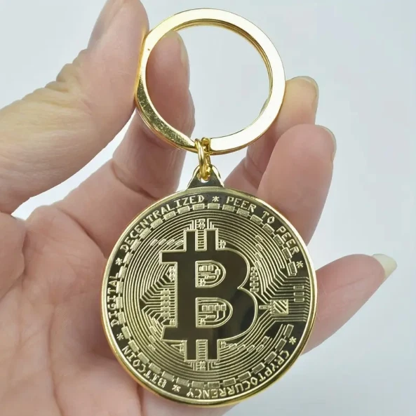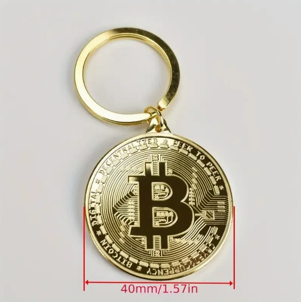 Gold Colored Bitcoin Keychain – Attract Luck and Symbolize Your Crypto Passion Carry a piece of the digital revolution and attract good fortune in the cryptocurrency arena with this stunning Gold Colored Bitcoin Keychain. Measuring 40mm (1.57 inches) in diameter, this keychain is a perfect representation of your passion for cryptocurrency and the future of finance. Features: - Premium Design : The keychain features a meticulously crafted Bitcoin emblem, finished in a vibrant gold color for an eye-catching appeal. - Durable Material : Made from high-quality materials to ensure it withstands daily use while maintaining its attractive appearance. - Perfect Size : At 40mm (1.57 inches) in diameter, it’s large enough to make a statement yet compact enough to fit comfortably in your pocket or attach to your keys, bag, or wallet. - Secure Attachment : Equipped with a sturdy keyring to keep your keys secure and easily accessible. Benefits: - Attract Good Fortune : Designed to bring luck in the cryptocurrency arena, this keychain is perfect for those who want to harness positive energy while showcasing their interest in Bitcoin. - Showcase Your Interest : A great conversation starter, this keychain is ideal for crypto enthusiasts who want to highlight their passion for digital currency. - Elegant Accessory : Its sleek and stylish design makes it a versatile accessory suitable for any outfit or occasion. - Ideal Gift : Makes a thoughtful gift for friends, family, or colleagues who are passionate about cryptocurrency and blockchain technology. Enhance your accessory collection with the Gold Colored Bitcoin Keychain and let it be a constant reminder of the innovative world of digital currency. Attract luck and prosperity in your crypto endeavors with this functional and stylish keychain.