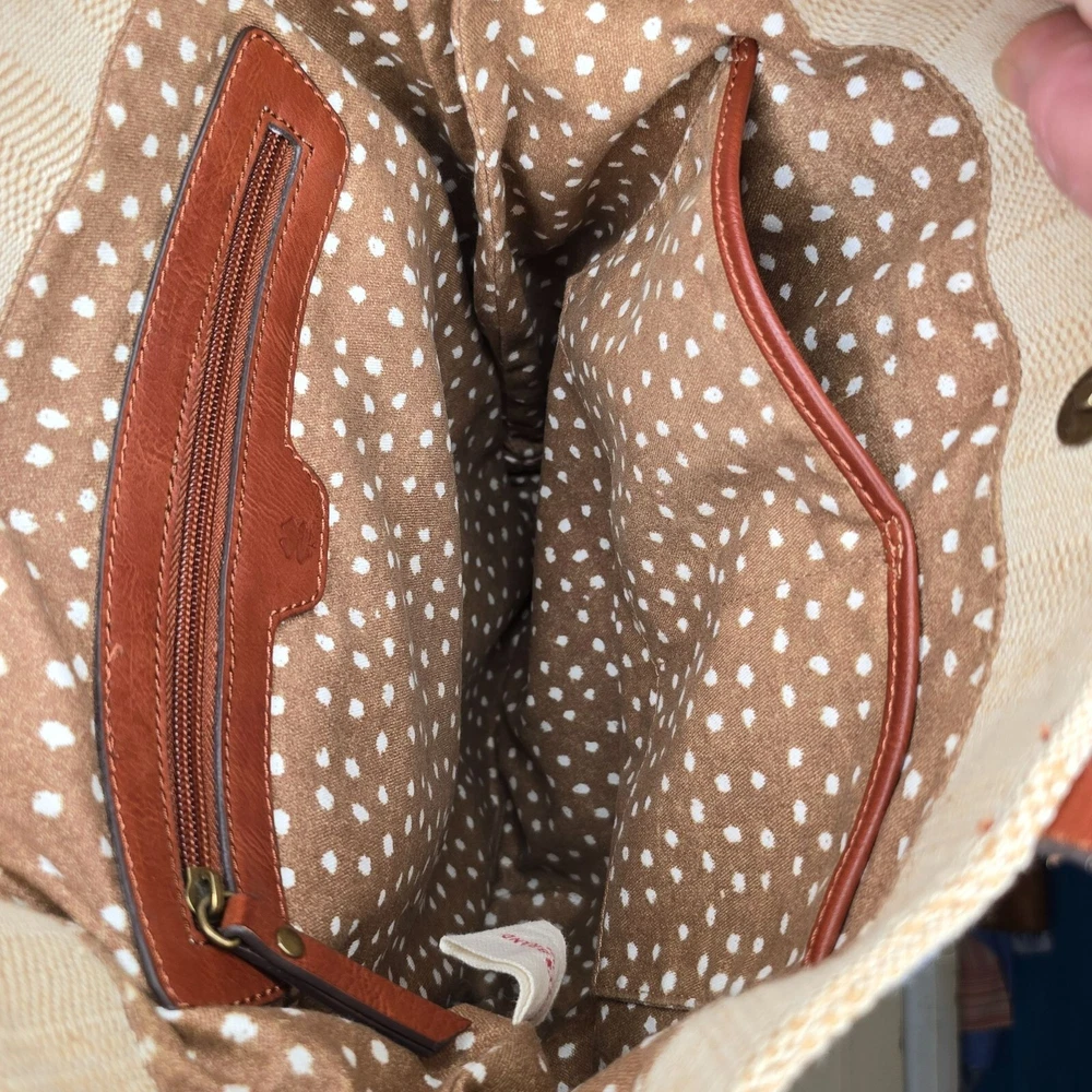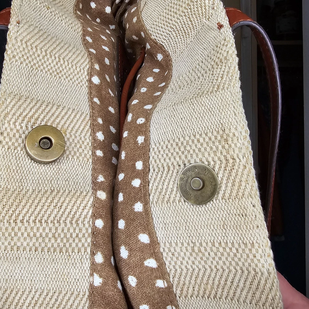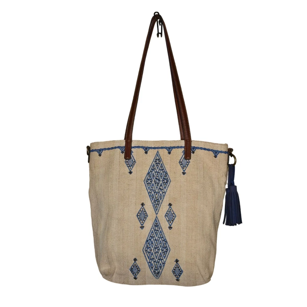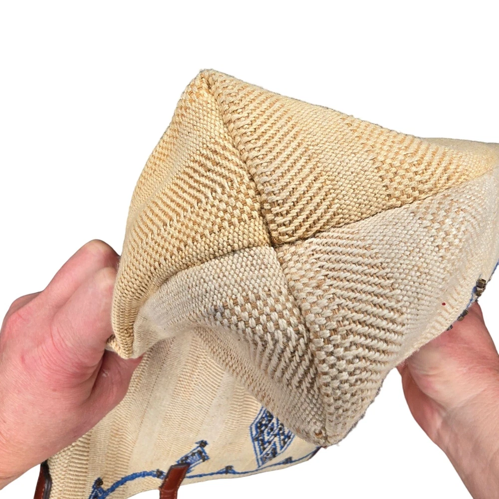 Spacious and stylish tote bag with intricate blue patterns, ideal for daily use. Durable leather straps and secure zipper closure. • Snap closure • Leather straps • Spacious interior • Intricate blue patterns • Durable materials Features: • Beaded Detail • Tassel Detail • Inside Pockets • Southwestern Style, Single Compartment Size: Womens Medium Size Bag Measurements: Length 14 in / 36 cm Width 4.5 in / 11 cm Height 13 in / 33 cm Chain Drop 13 in / 33 cm Condition: Pre-Owned Good Very Good condition Gently used No rips, stains, tares, or pilling No visible signs of wear Measurements are found in the description Please review all photos and descriptions closely before purchasing. Thank you! Smoke free workspace Please read the description for further details and measurements, Thank you!