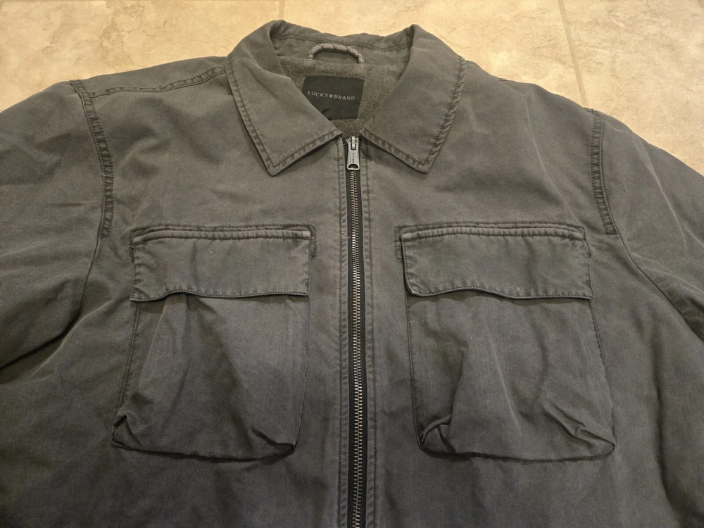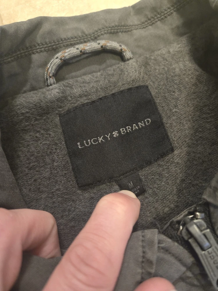Lucky Brand Mens size L Fleece Lined Charcoal Gray jacket These items are close out. These items cannot be returned and all sales are final. Please ask any and all questions before making any offers or bids. Let's make sure this item is right for you. Thank you for your business. Colors of items in picture may not match one hundred percent because of photography. All sales are final. All shipping is USPS Priority Any item purchased past 2 PM? Well then, ship the next business day. Thank you!!!