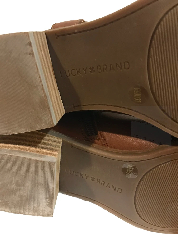 Elevate your equestrian style with these Lucky Brand Karesi Equestrian boots. Crafted from high-quality leather, these boots feature a round toe shape, low heel height, and a zipper closure for easy wear. The solid pattern and brown color make them versatile for any occasion, from casual outings to business meetings to cocktail parties. These women's boots are designed for comfort, with a cushioned insole and lined interior. The outsole is also made of leather, ensuring durability and longevity. Perfect for any season, these boots are a must-have for any fashion-forward woman. Will be shipped & packaged with care.
