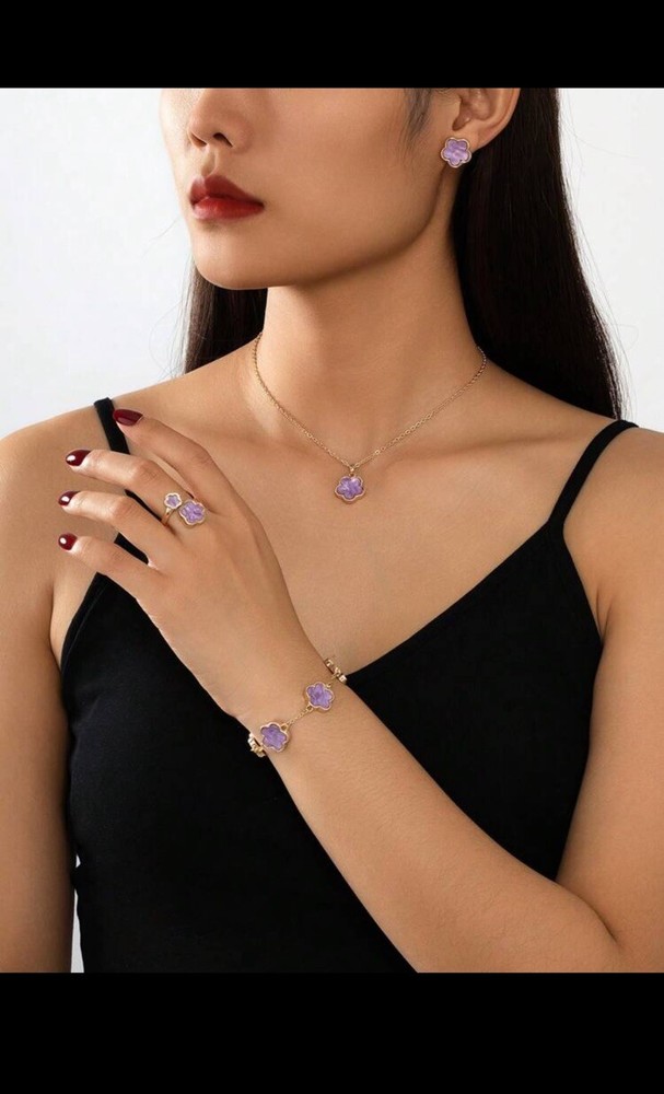 Lucky Clover Flower Necklace, Ring, 2 Bracelets,Earrings Jewelry Set. Condition is New with tags. Shipped with Economy Shipping with Adult Signature Required.