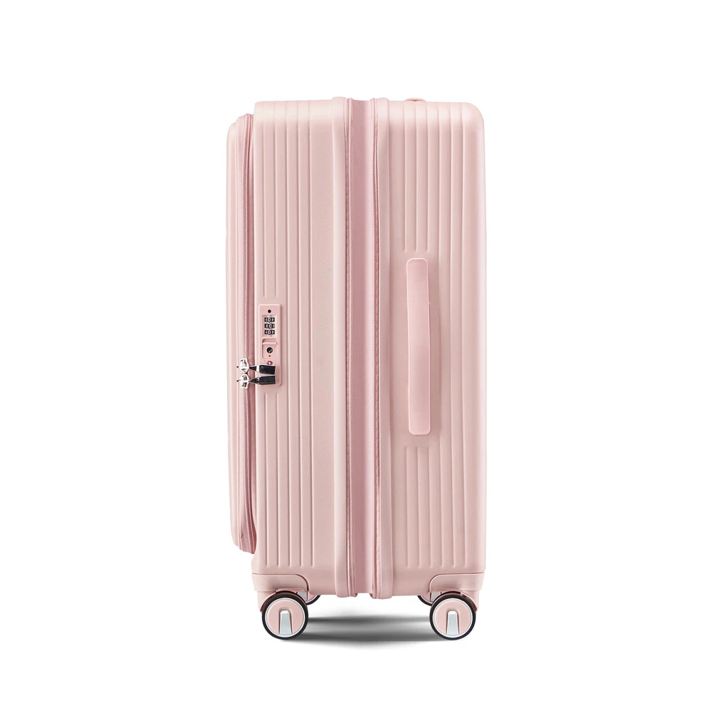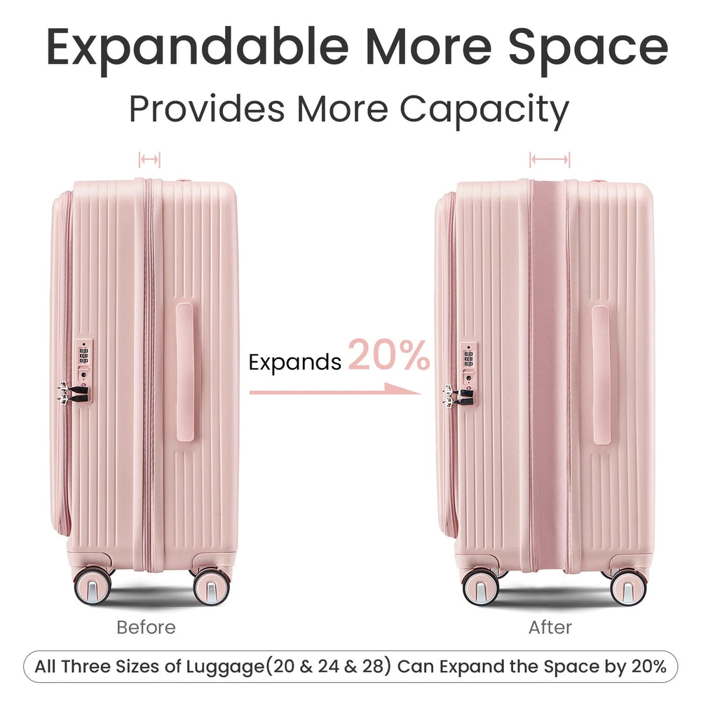 Luggage Sets 3 Piece(20/24/28), Expandable Carry On Luggage with TSA Lock Airline Approved, 100% PC Hard Shell and Lightweight Suitcase with Front Pocket and Spinner Wheels Specifications Place of Origin China Main Color Pink Main Material PC Dangerous Goods #dangerFlag# Dimensions & Weights Assembled Length (in.) Not Applicable Assembled Width (in.) Not Applicable Assembled Height (in.) Not Applicable Weight (lbs) Not Applicable Product Features FRONT LAPTOP COMPARTMENT to safely store and easily access electronics. Separate your electronics from clothing. Suggested laptop size 15.6 inches and under.