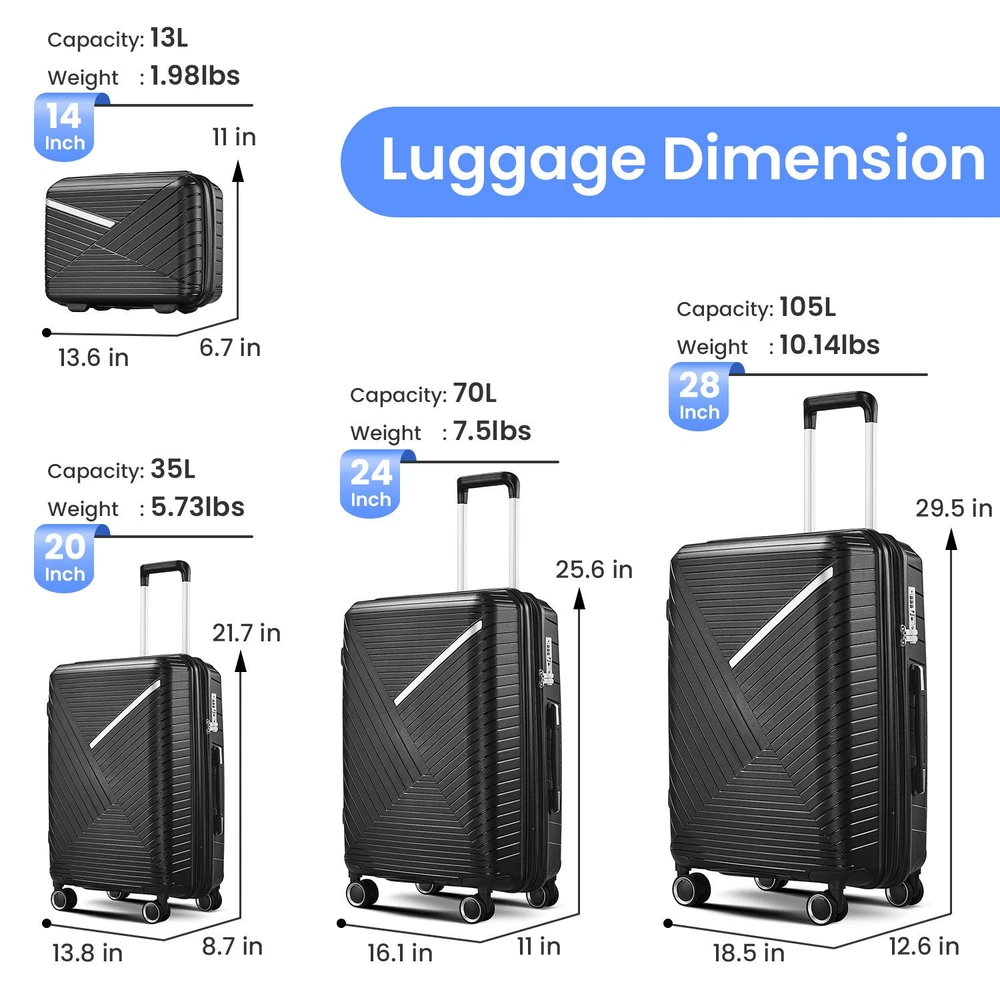 Luggage Sets 4 Piece(14/20/24/28), Expandable Lightweight Suitcase with 4 Double