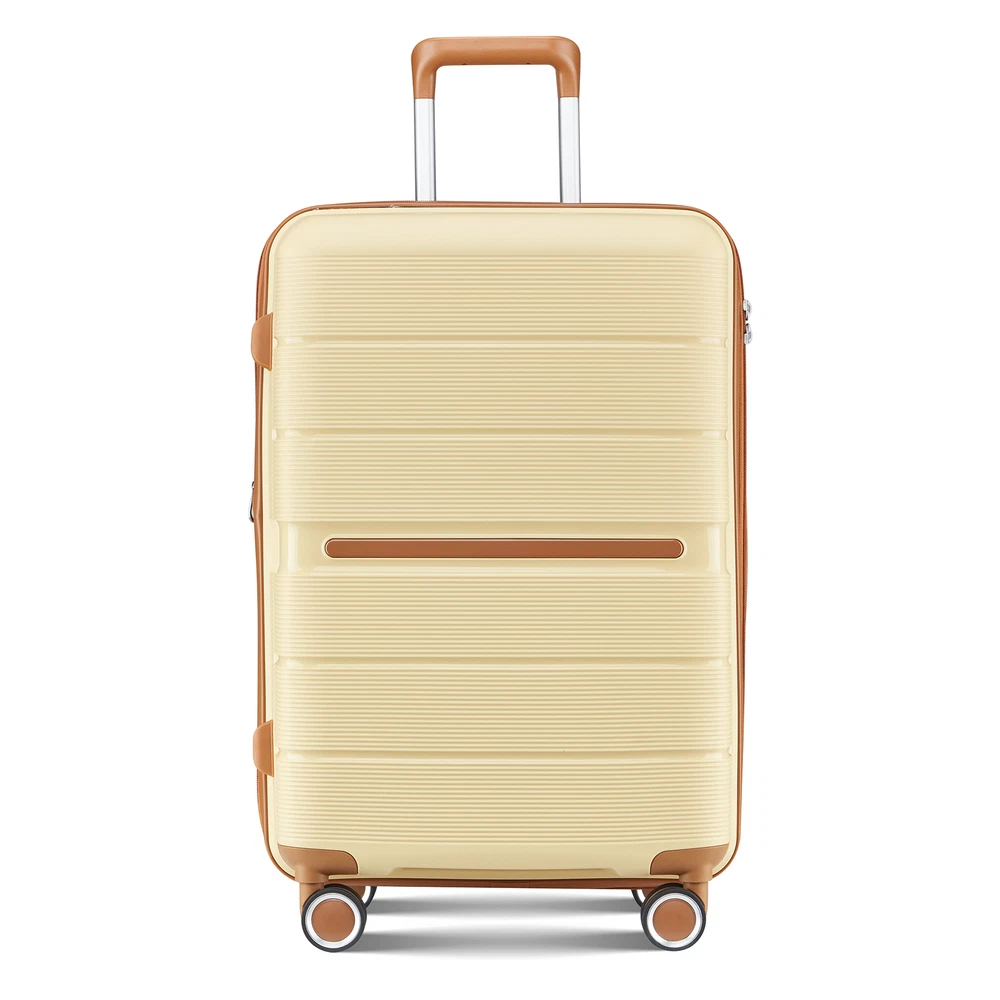 Specification Product Information Item Code:W2098P186373 Product Type:General Item Product Name:Luggage Sets 4 Piece(14/20/24/28) PP Lightweight & Durable Expandable suitcase Place of Origin:China Main Color:Apricot Cream Main Material:Polypropylene Product Dimensions Assembled Length (in.):Not Applicable Assembled Width (in.):Not Applicable Assembled Height (in.):Not Applicable Weight (lbs.):Not Applicable Package Size Length (in.):19.30 Width (in.):11.80 Height (in.):30.00 Weight (lbs.):26.50 Product Features Top quality luggage sets, PC material for hardshell, which makes the luggage more durable, lighter and impact-resistant. 21in is best for carry on, 29in expands 20% for more spaces. Organized and Spacious Interior. The fully lined luggage includes a handy divider and an interior organizer with zippered pocket for smaller items. Organized and Spacious Interior. The fully lined luggage includes a handy divider and an interior organizer with zippered pocket for smaller items. Adjustable 3-level aluminum telescoping handle allows you to quickly maneuver in tight spaces and it's sturdier than most of the telescoping handle on the market. The top/side soft reinforced grip handles for easy carrying when in a hurry, or it can be really handy when lifting the suitcase with heavy weight. Side-mounted TSA LOCK with smooth YKK zipper act to deter theft, ensuring that only you or a TSA agent have easy access to your belongings when traveling, added security and convenience. Multi-directional spinner wheels to provide 360° effortless mobility and ease on traveler's wrist, re-engineered lightweight. Description