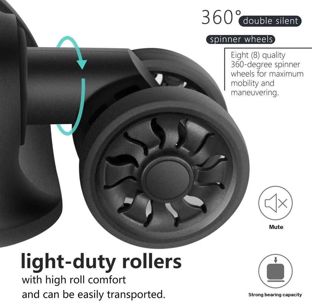 Small, medium and large luggage made from extra strong ABS material. Mounted TSA combination lock provides peace of mind when checking cases through security. 360 degree multi-directional spinner wheels offer effortless mobility in any direction. Push-button locking handle adjusts to multiple heights for comfort when rolling the case. Interior skirted division with compression straps keep clothing neatly packed. Dimensions include the wheels and carry-handles: Suitcase Size Small- 15.4 x 8.7 x 22.4 -inches Medium- 17.7 x 9.8 x 26.4 -inches Large- 20.9 x 11.4 x 30.3’(12.6in when it is expandable) .Please note that ONLY 28in is Expandable, adding 15%to the scalable space. Product Dimensions 22 x 15 x 9 inches Item Weight 7.63 pounds Department Unisex Adult Manufacturer Coolife