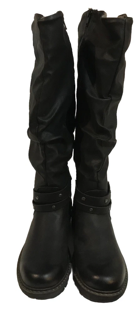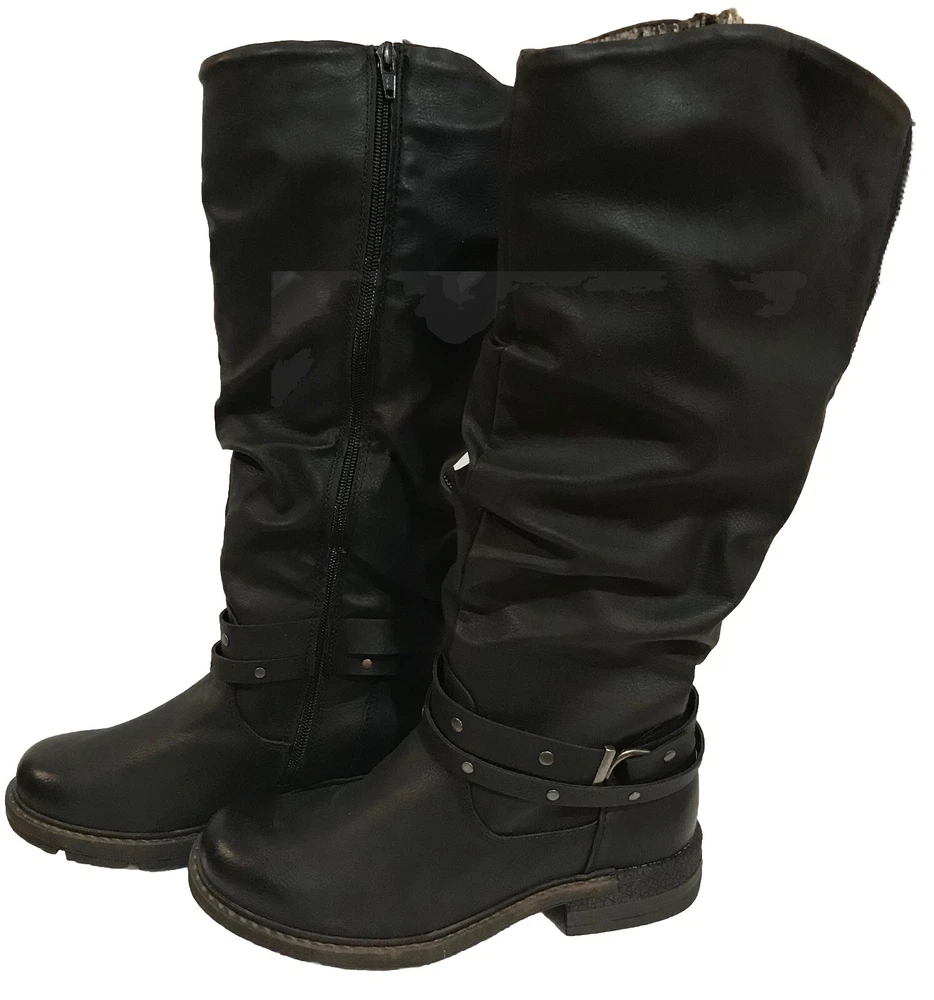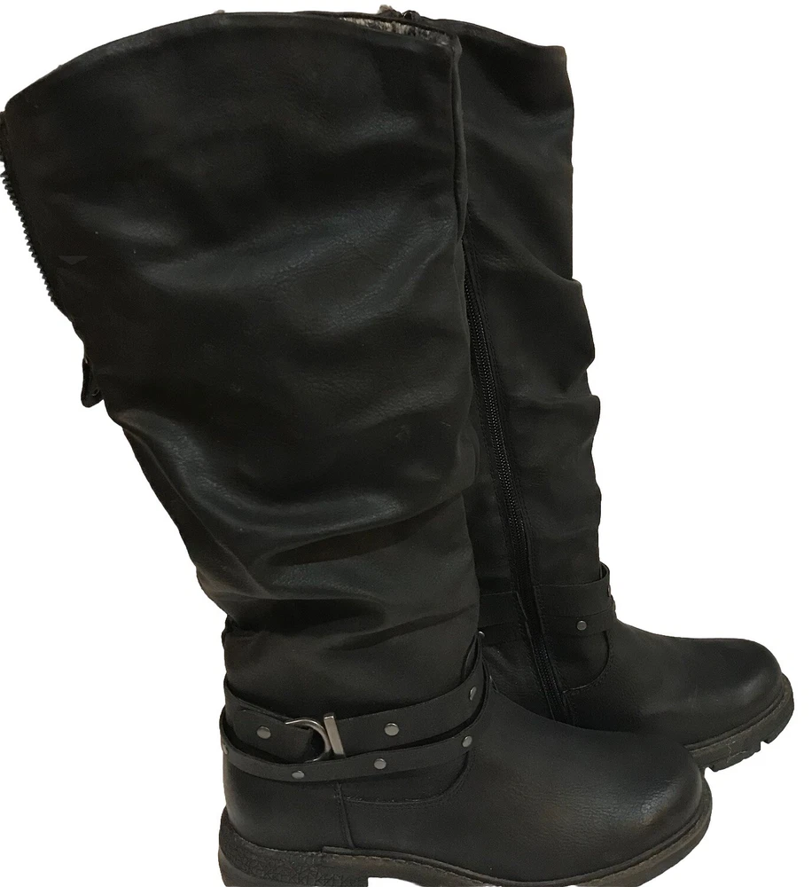 Get ready for the winter with these stylish and comfortable Lukees by MUK LUKS women's boots in black. Perfect for outdoor activities, travel, activewear, and casual wear, these boots feature a solid pattern and a blended fabric upper material made of faux leather. The boots are lined with faux fur for added warmth and comfort, and they come with a low heel height of 1-1.9 inches. These boots have a zip closure and fur trim accents, making them both stylish and functional. They are available in women's US shoe size 6.5 and are designed to be riding boots. Don't miss out on the chance to add these versatile boots to your winter wardrobe. Packaged & shipped with care.
