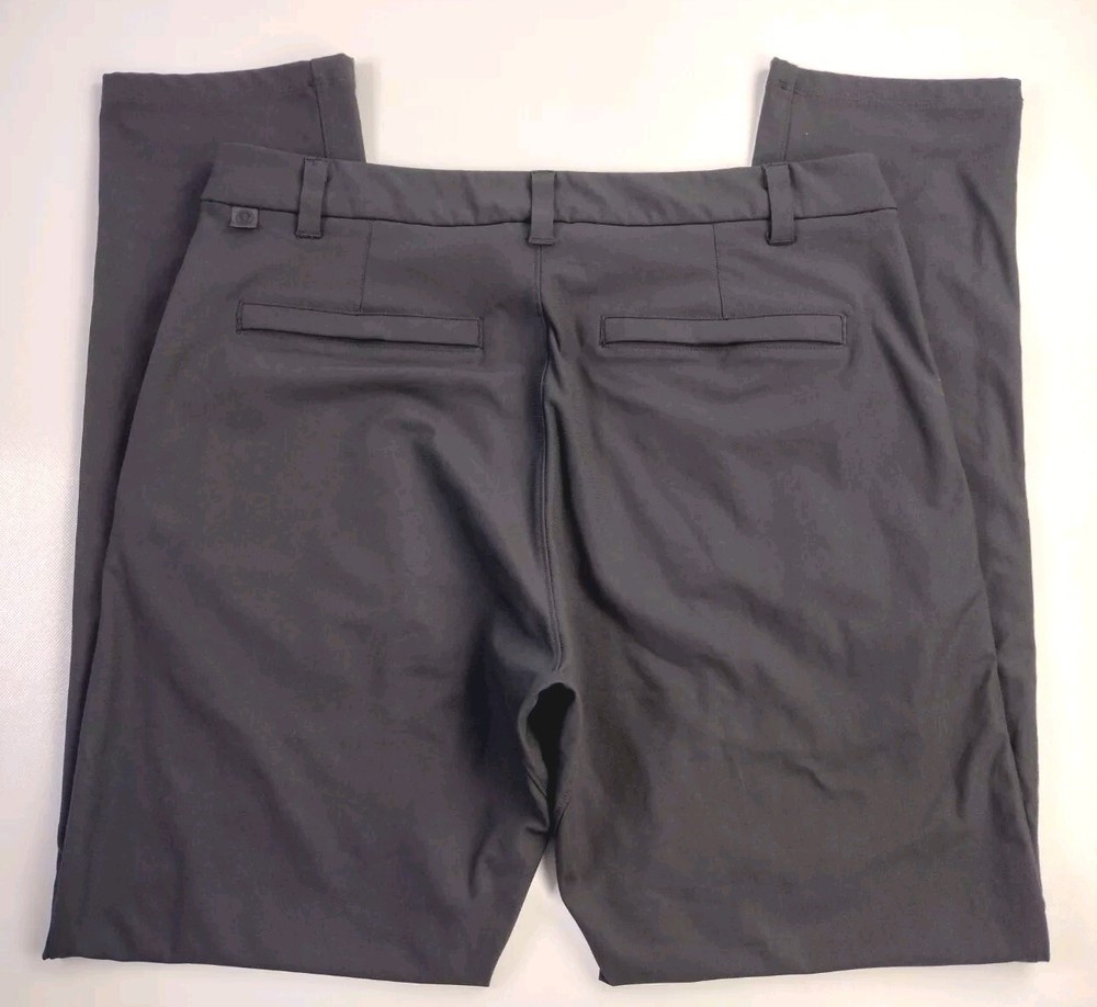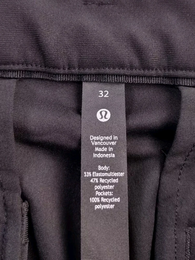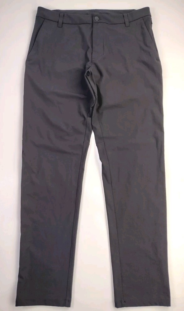 Elevate your wardrobe with these sleek Lululemon ABC Classic Fit pants. Designed for the modern man, these chino-style pants feature a comfortable mid-rise and a straight leg for a versatile look that transitions seamlessly from the office to a casual day out. The 5-pocket design adds functionality to this contemporary piece, making it an essential addition to your collection. Crafted from a blend of polyester and spandex, these pants boast stretch fabric that moves with you, ensuring comfort throughout the day. The pants come in a classic black color, making them easy to pair with any top. Whether you're traveling, going casual or business, these pants fit the bill. Machine washable for easy care, these pants are a perfect blend of style and comfort.