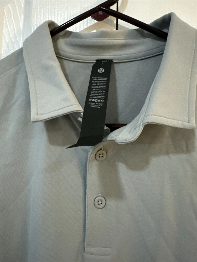 Elevate your activewear wardrobe with this Lululemon Polo Shirt for Men in size Small. The Short Sleeve ShowZero Polo design features a Collared Neckline with a Spread Collar Style and a Button Closure. The gray color and solid Pattern make it a versatile addition to your collection. Made with a blend of Polyester, Nylon, Spandex, and Lyocell, this lightweight and breathable fabric is perfect for all seasons, including Winter, Summer, Fall, and Spring. It's machine washable for easy care and suitable for both casual and golfing occasions. This athletic fit Polo Shirt is perfect for sports enthusiasts who want to look and feel great.