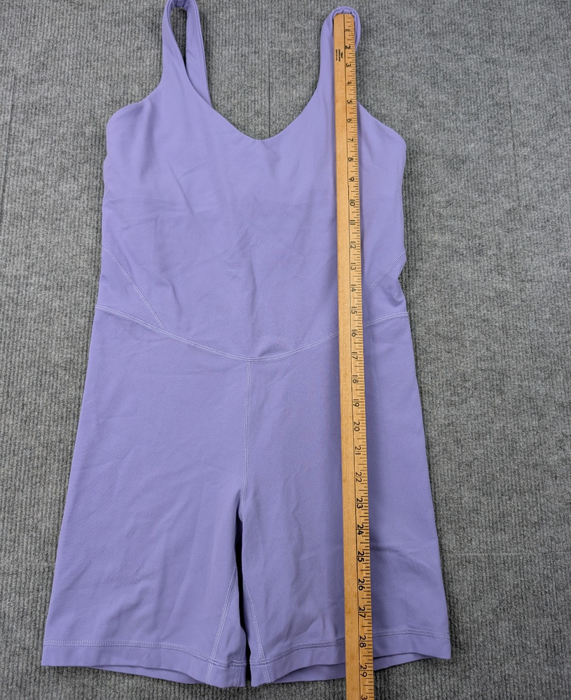 Department: Women Type: Romper / One-Piece Size: 8 Color: Purple / Lavender Style: Athletic Romper Fit: Fitted Sleeve Length: Sleeveless Neckline: V-Neck Leg Style: Biker Short Pattern: Solid Material: Polyester / Spandex Blend Fabric Type: Stretch Performance Knit Closure: Pullover Features: Stretchy, Lightweight, Breathable, Built-In Shorts Occasion: Activewear, Casual Activity: Yoga, Pilates, Fitness, Lounge Condition: Pre-owned