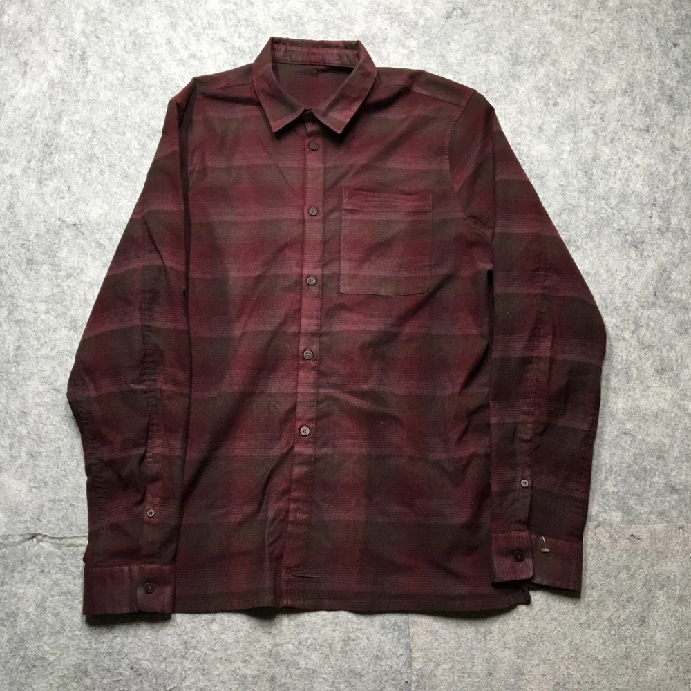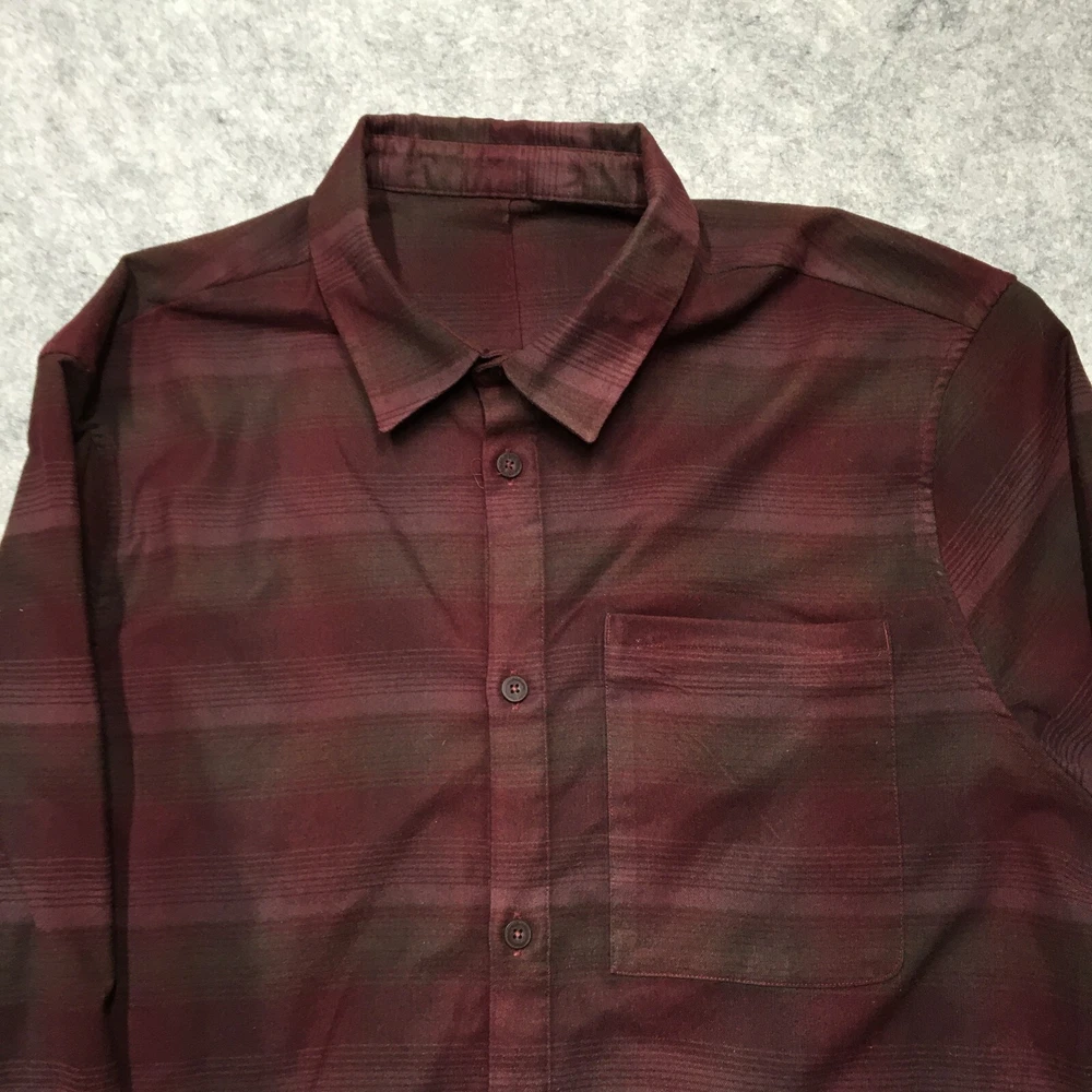 Department: Men Personalize: No Garment Care: Machine Washable Sleeve Length: Long Sleeve Features: Pockets, Stretch Color: Red Occasion: Casual, Workwear Size: XL Accents: Button Material: Cotton Seller Notes: “Good Used Condition! No stains, rips, or holes. See photos for condition specifics and measurements.” Type: Button-Up Fit: Classic Closure: Button Theme: Classic, Outdoor Vintage: No Season: Fall, Spring, Winter Size Type: Regular Fabric Type: Flannel Brand: Lululemon Neckline: Collared Handmade: No Collar Style: Point Graphic Print: No Pattern: Plaid