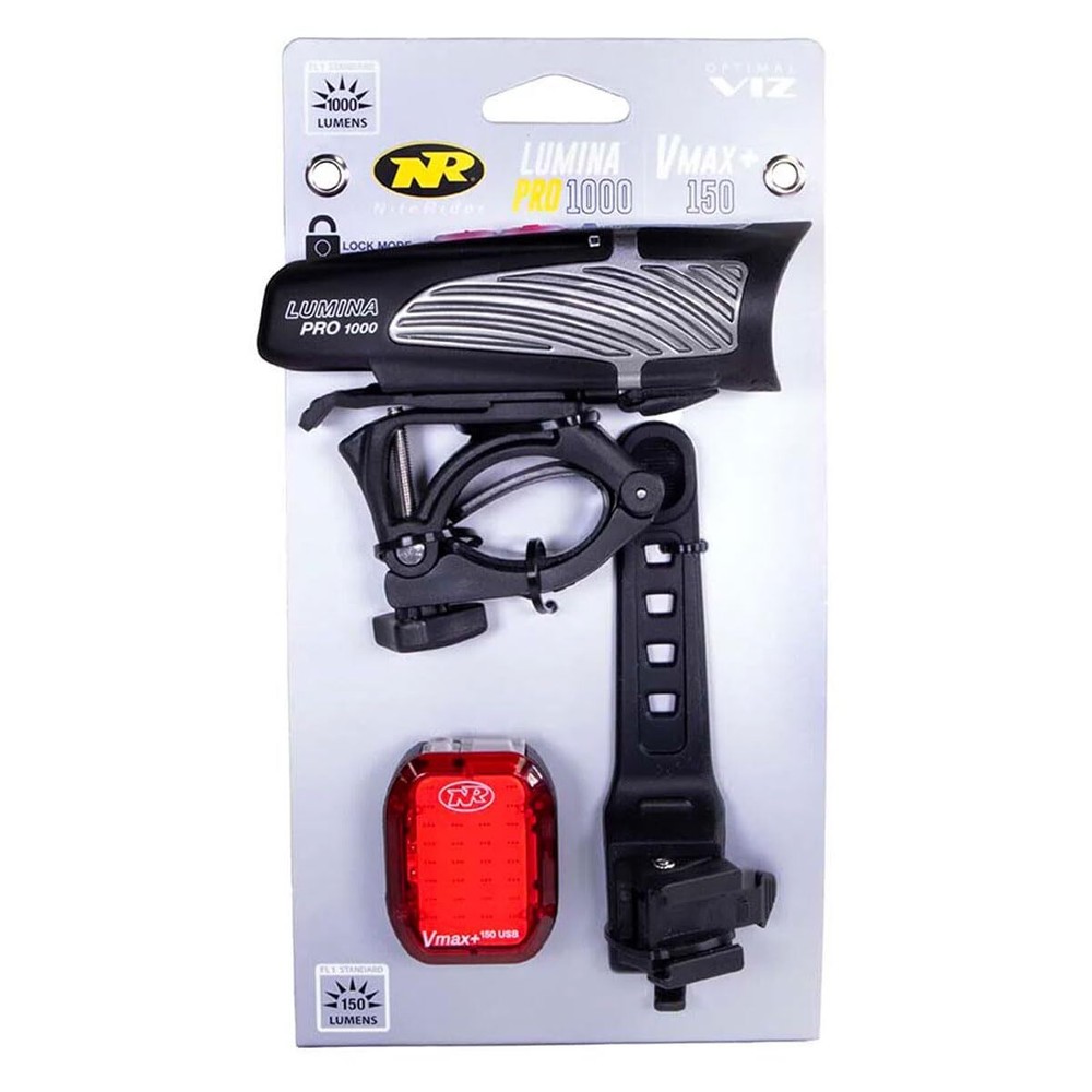 Lumina Pro 1000 and Vmax+ 150 Bike Light Set Combo USB Rechargeable Bicycle Headlight LED Front Light Water Resistant Mountain Road City Commuting Cycling Safety Flash Black/Red Color Black / Red Brand NiteRider Material Nylon Power Source Battery Powered Water Resistance Level Water Resistant Item Weight 252 Grams Mounting Type Handlebar and SeatPost Number of settings 6 Brightness 1000/150 Auto Part Position Front LOCK MODE feature keeps the Lumina Pro 1000 Bike headlight securely powered off during Transport or storage. Unlock/ lock the light by simply holding the power button down for 7 seconds. Lumina Pro 1000 Lumen Output: 1000. Vmax+ 150 Lumen Output: 150 Lumina Pro 1000 Headlight Weight: 193 grams. Vmax+ 150 Taillight weight: 59 grams. Water / Dust Resistant IP64 Rated Lumina Pro 1000 Headlight: TYPICAL RUN TIMES Low - 6:00h at 100 Lumens Med - 3:00h at 200 Lumens High - 1:30h at 400 Lumens Boost - 0:45h at 1000 Lumens Super Flash - 8:00h at 400 Lumens Pulse Flash - 8:00h at 400 Lumens Fast Flash - 8:00h at 400 Lumens Walk Mode - 18:00h at 50 Lumens Boasting 1000 lumens with a sleek form factor and a collimator lense that lends to a brilliant and even light beam pattern! NiteRider® makes this newcomer USB-C rechargeable for convenient on-the-go charging. A feature of note on the 1000 are color-coded light modes shown through the power button switch. Its light weight at 193 grams makes it quite suitable as a helmet mountable option as well as bar compatible—standard and oversized diameters. The Lumina™ Pro 1000 features a highly durable light housing with DuPont® Fiberglass reinforced nylon meeting all required FL1 Standards for run times, impact testing and dust/water resistance. Vmax+ 150 is NiteRider’s first taillight featuring COB (Chip-on-Board) LEDs, which for cyclists means it emits highly visible flash patterns in a smaller, more compact package. Its feather-like light weight makes it perfect as a wearable safety light—easily clipping onto straps, belt loops, and more! Includes: Lumina™ Pro 1000 front light, Vmax+™ 150 taillight, handlebar clamp mount, rubber seat post strap mount, USB-C charging cable, and USB charging cable. Shipping We offer FREE shipping on all orders! We ship within Three business days of payment, usually sooner. We use a selection of shipping services such as UPS, FedEx, USPS etc. We only ship to the lower 48 states, no APO/FPO addresses or PO Boxes allowed. Local pickups and combined shipping options are not provided at this time. Return You can return a product for up to 30 days from the date you purchased it. Any product you return must be in the same condition you received it and in the original packaging. Please keep the receipt. Payment We accept payment by any of the following methods: PayPal Please pay as soon as possible after winning an auction, as that will allow us to post your item to you sooner! Feedback Customer satisfaction is very important to us. If you have any problem with your order, please contact us and we will do our best to make you satisfied. Contact Us If you have any queries, please contact us via ebay. We usually respond within 24 hours on weekdays. Please visit our eBay store to check out other items for sale! Thank you for shopping at our store.