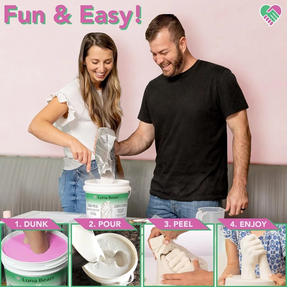Luna Bean Hand Casting Kit – Couples Gifts Idea, Anniversary for Couple Gift, Mo COUPLES SIZE! Our Hand Casting Kit is the ideal couple’s gift to capture the moment between you and your loved one. Create a timeless keepsake with this unique gift to treasure for years to come. A fun and special gift for couples, Christmas gift for her, anniversary gift for couples or a couples Christmas gift. 'PRESERVE EVERY PRECIOUS DETAIL! The unique rubbery cast captures every fine line and fingerprint. Our premium Step 1 alginate molding material is Luna Bean's highest quality custom molding gel formula. Guaranteed to provide more working time, form a stronger cast, capture every detail, and has bolder color changing properties than other craft brand. FUN & EASY! Taller and wider bucket plus more molding & casting materials than other 2 person kits! Easily casts up to 2 Adult hands, 2 Adults + 1 small child, or 2-4 Young Children. See the Luna Bean XL FAMILY Hand Casting Kit to cast 3+ hands. 'BEST SELLING CASTING KIT: Kit Contents INCLUDED: Large Plastic Molding Bucket, Step 1 Molding Powder (600g), Step 2 Casting Stone (1000g), 2 Sandpapers, 2 Demolding sticks, 2 Detailing Sticks, Plastic Sculpting Knife, Pair of Gloves, Detailing Pin and Detailed Instructional Booklet in English and Spanish (online). Full length INSTRUCTIONAL VIDEO available. Product Ingredients: Calcium sulfate, talc, silicon dioxide. ---COUPLES SIZE! Our Hand Casting Kit is the ideal couple’s gift to capture the moment between you and your loved one. Create a timeless keepsake with this unique gift to treasure for years to come. A fun and special gift for couples, Christmas gift for her, anniversary gift for couples or a couples Christmas gift. ---'PRESERVE EVERY PRECIOUS DETAIL! The unique rubbery cast captures every fine line and fingerprint. Our premium Step 1 alginate molding material is Luna Bean's highest quality custom molding gel formula. Guaranteed to provide more working time, form a stronger cast, capture every detail, and has bolder color changing properties than other craft brand. ---FUN & EASY! Taller and wider bucket plus more molding & casting materials than other 2 person kits! Easily casts up to 2 Adult hands, 2 Adults + 1 small child, or 2-4 Young Children. See the Luna Bean XL FAMILY Hand Casting Kit to cast 3+ hands. ---'BEST SELLING CASTING KIT: Kit Contents INCLUDED: Large Plastic Molding Bucket, Step 1 Molding Powder (600g), Step 2 Casting Stone (1000g), 2 Sandpapers, 2 Demolding sticks, 2 Detailing Sticks, Plastic Sculpting Knife, Pair of Gloves, Detailing Pin and Detailed Instructional Booklet in English and Spanish (online). Full length INSTRUCTIONAL VIDEO available. ---Product Ingredients: Calcium sulfate, talc, silicon dioxide. Luna Bean Hand Casting Kit – Couples Gifts Idea, Anniversary for Couple Gift, Mo COUPLES SIZE! Our Hand Casting Kit is the ideal couple’s gift to capture the moment between you and your loved one. Create a timeless keepsake with this unique gift to treasure for years to come. A fun and special gift for couples, Christmas gift for her, anniversary gift for couples or a couples Christmas gift. 'PRESERVE EVERY PRECIOUS DETAIL! The unique rubbery cast captures every fine line and fingerprint. Our premium Step 1 alginate molding material is Luna Bean's highest quality custom molding gel formula. Guaranteed to provide more working time, form a stronger cast, capture every detail, and has bolder color changing properties than other craft brand. FUN & EASY! Taller and wider bucket plus more molding & casting materials than other 2 person kits! Easily casts up to 2 Adult hands, 2 Adults + 1 small child, or 2-4 Young Children. See the Luna Bean XL FAMILY Hand Casting Kit to cast 3+ hands. 'BEST SELLING CASTING KIT: Kit Contents INCLUDED: Large Plastic Molding Bucket, Step 1 Molding Powder (600g), Step 2 Casting Stone (1000g), 2 Sandpapers, 2 Demolding sticks, 2 Detailing Sticks, Plastic Sculpting Knife, Pair of Gloves, Detailing Pin and Detailed Instructional Booklet in English and Spanish (online). Full length INSTRUCTIONAL VIDEO available. Product Ingredients: Calcium sulfate, talc, silicon dioxide. COUPLES SIZE! Our Hand Casting Kit is the ideal couple’s gift to capture the moment between you and your loved one. Create a timeless keepsake with this unique gift to treasure for years to come. A fun and special gift for couples, Christmas gift for her, anniversary gift for couples or a couples Christmas gift. 'PRESERVE EVERY PRECIOUS DETAIL! The unique rubbery cast captures every fine line and fingerprint. Our premium Step 1 alginate molding material is Luna Bean's highest quality custom molding gel formula. Guaranteed to provide more working time, form a stronger cast, capture every detail, and has bolder color changing properties than other craft brand. FUN & EASY! Taller and wider bucket plus more molding & casting materials than other 2 person kits! Easily casts up to 2 Adult hands, 2 Adults + 1 small child, or 2-4 Young Children. See the Luna Bean XL FAMILY Hand Casting Kit to cast 3+ hands. 'BEST SELLING CASTING KIT: Kit Contents INCLUDED: Large Plastic Molding Bucket, Step 1 Molding Powder (600g), Step 2 Casting Stone (1000g), 2 Sandpapers, 2 Demolding sticks, 2 Detailing Sticks, Plastic Sculpting Knife, Pair of Gloves, Detailing Pin and Detailed Instructional Booklet in English and Spanish (online). Full length INSTRUCTIONAL VIDEO available. Product Ingredients: Calcium sulfate, talc, silicon dioxide.