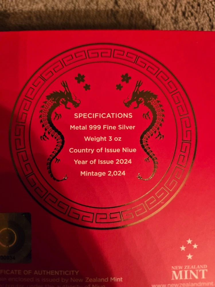 2024 3oz the year of the dragon silver coin comes with box