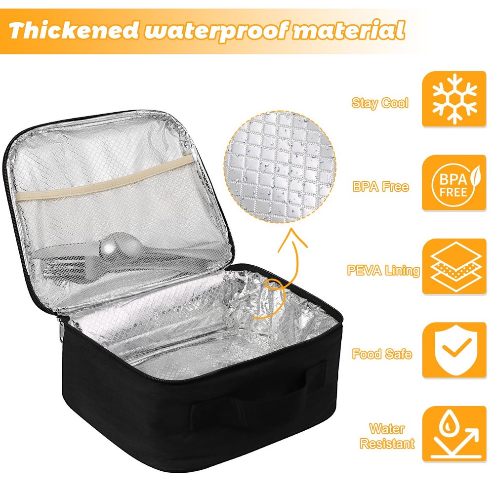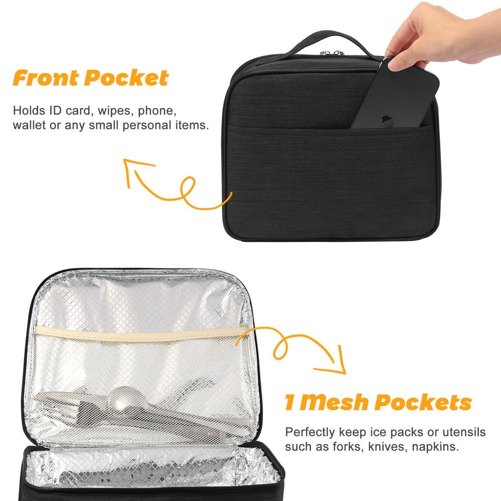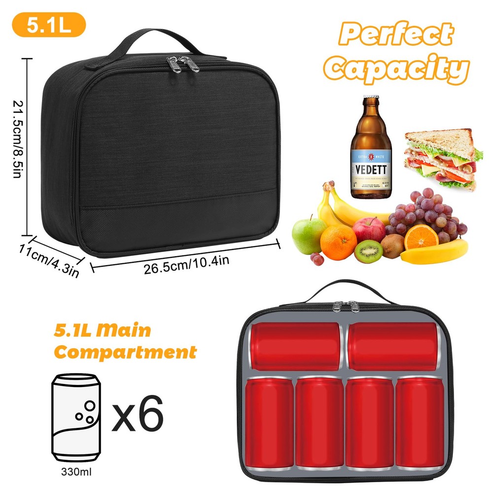 【Portable & Light-Weight Lunch Box】: This lunch bag is so Portable & Light-Weight that it perfect for everyday used by Men Women. 【Suitable Size】: The exact size (8.7x 4.5x 10.2in / 22 x 11x 26cm). Spacious enough to fit 6 cans of soda, or person’s lunch and more 【Perfect Size for person lunch】: The exact size (8.7x 4.5x 10.2in / 22 x 11x 26cm). With enough space to carry lunch for more than person, this lunch bag is perfect for outdoor 【 Easy to Clean & Waterproof】: The durable material of this lunch box makes it easy to clean and waterproof enough for travel 【Durable Lunch Bag】: Made with high-quality materials, this lunch box is designed to last, ensuring its longevity and value for money.
