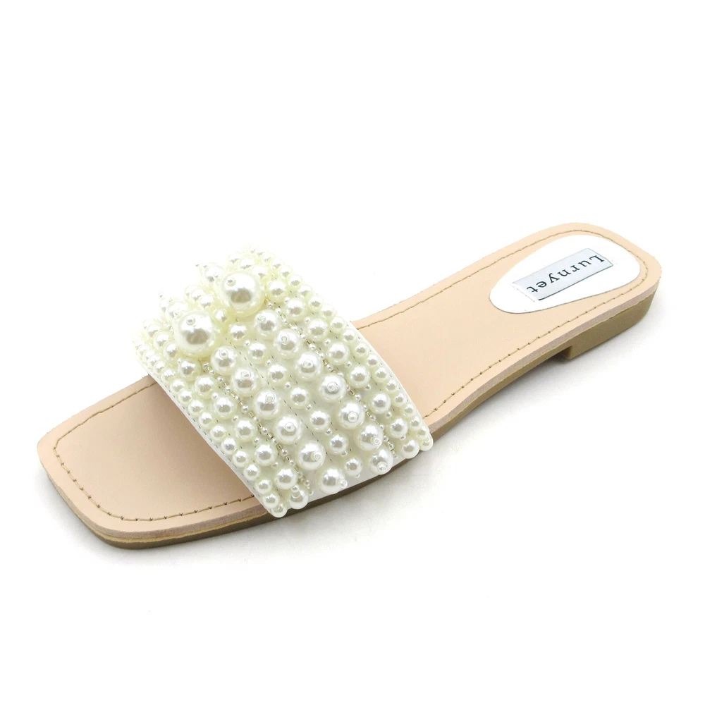 Description: Lurnyet Women's Pearl Embellished One Band Flat Sandal is a stylish and comfortable slip-on sandal designed for casual outdoor wear. The sandal features a synthetic upper material with pearl accents on the H-band. It has a flat heel height of under 1 inch, making it suitable for all-day wear. Perfect for women in US shoe sizes 6-10 looking for a fashionable yet practical footwear option. Payment Information: We Accept PayPal We Accept Credit Card via PayPal Shipping Information: We provide Same Day FREE SHIPPING domestically within the U.S.A USPS Priority (2-3 business days) & USPS Priority International (14 days with tracking) We reserve the right to charge additional shipping fee for reship items due to wrong shipping address provided during checkout. All orders before 5PM EST will ship out same day!, Monday - Friday Ships Same Day with TRACKING! Refund & Return Policy: We offer a 30 day return policy on all items purchased from us. Please contact us within 30 days after receipt of the item for a return. Do not ship the item back to us without contacting us first. Return shipping is responsibility of buyer.