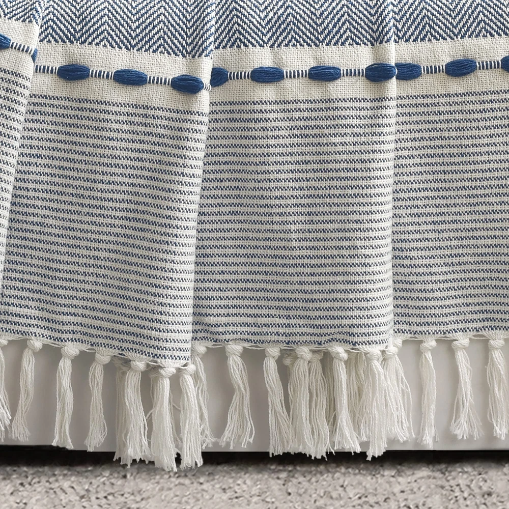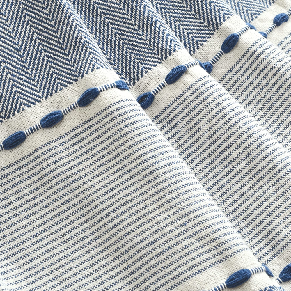 Add a simple style to your home with this cozy throw. The stripe design matches many different interior design styles like boho and hygge. This throw is made of yarn dyed woven cotton for your comfort. There is a tassel fringe detail for extra style. Add a simple style to your home with this cozy throw. The stripe design matches many different interior design styles like boho and hygge. This throw is made of yarn dyed woven cotton for your comfort. There is a tassel fringe detail for extra style. Add a cozy vibe to your home with this throw blanket. The relaxed colors and pattern of this throw make it perfect for almost anywhere in your home. Toss it on your bed for extra layers at night, or on your sofa for added comfort. This blanket would look great in a farmhouse or boho styled home. In between the stripes are rows of a unique tufted design and there is a 3.5 inch tassel fringe detail for a added style. This cotton throw measures 50 inches by 60 inches making it ideal for single use. Machine washable. Please refer to the care label for full instructions before cleaning.