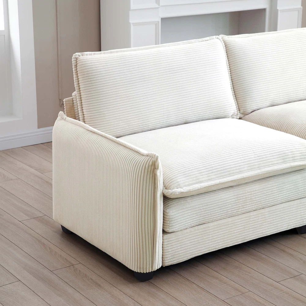 This sofa set is pure elegance! The beige corduroy fabric feels incredibly soft and luxurious, while the deep seats offer amazing comfort. The retro-meets-modern design adds instant style to any room—it's both a cozy spot to relax and a stunning statement piece. Perfect for anyone who loves a chic, timeless look without sacrificing comfort!