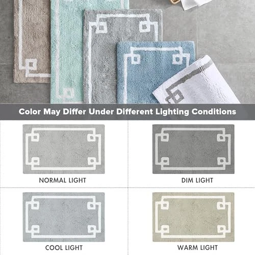 The Evan Cotton Tufted Bath Rug provides the perfect balance of comfort and style to update your bathroom. This tufted bath rug features a contrasting white border on a soft colored ground creating a clean hotel look, while the plush medium pile weight provides pure soft comfort for your feet. The light latex coated back makes this bath rug skid resistance for better safety, while also keeping rug in place throughout the day. Machine washable for easier care, this cotton bath rug is also OEKO-TEX certified, meaning it does not contain any harmful substances or chemicals ensuring quality comfort and wellness. Bath rugs are sold separately in multiple sizes and colors, making it easy to complete any bathroom size and decor! Made from 100% cotton for a perfect balance of comfort and style to your space. Due to the nature of the fabric, some linting may occur initially, allow 3-5 washes to subside. Over time some threads may come loose; simply trim any loose threads as needed The plush medium pile weight ensures pure soft comfort for your feet, with high absorbency and a cool, striking contrast white border design for a clean hotel look right in your own home Premium shower rug that is Oeko-Tex certified to be free of any chemicals and harmful substance. And the non-skid latex backing helps keep the rug in place for better safety What's in the box? 1 Bath Rug: Size 24"W x 72"L. Medium pile 0.5" high Care instructions: Machine wash cold seperately, on gentle/delicate cycle. Use mild detergent and non-chlorine bleach when needed. Tumble dry low. Some linting may occur due to nature of fabric. Allow 3-5 washes to subside. Do not iron. Do not dry clean