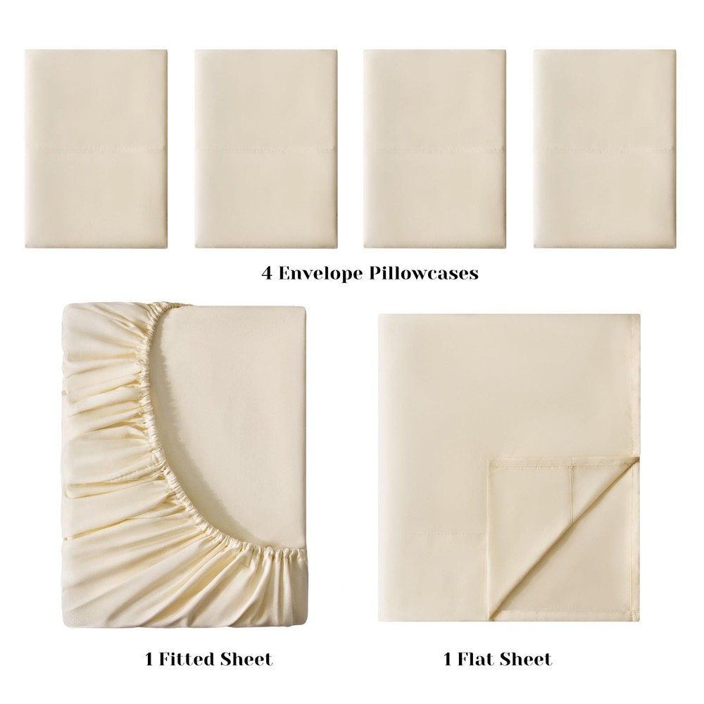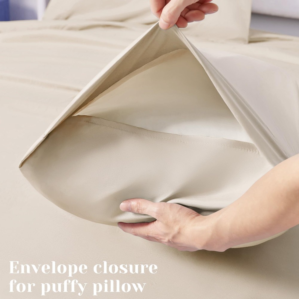 DEEP POCKETS: Fits mattresses up to 15" deep with elastic around the fitted sheet. It is uniquely designed to easy fit and stay on bed tightly, and especially deeper in the corners, allowing it to stretch over a thick mattress to provide a secure fit without popping off while you sleep. King size 6 piece hotel luxury bed sheets set include - 1 Flat sheet (102"x105"), 1 Fitted sheet (78"x80"), 4 Pillowcases (20.5"x37"). PREMIUM QUALITY: 1800 TC Sheet set is made in OEKO-TEX STANDARD 100 FACTORY, use the A quality microfiber materials, double brushed on both sides to increase ultimate smoothness and softness. Our proprietary weaving process creates the fabric Stain Resistant, Cool, and good in feeling and permeability. It is stronger and more durable than cotton. EFFECTIVE SLEEP: Our sleep adaptation technology provides incredible soft fabrics which can help you sleep quickly. Elegant Comfort yarns and ventilated weave make you feel comfortable and keep you from waking up hot or sweaty. Make your family members breathe easy and wake up feeling refreshed instead of congested. You will get the best sleeping ever! EASY CARE: luxury bed sheets are resistant to fading, staining, shrinking, and wrinkles which are more durable than egyptian cotton and organic cotton. They are machine washable in cold water and dry quickly on tumble! It's exceptionally color-fast, and even after years of regular use will look as vibrant as the first night you enjoyed it. PROMISE: We have 100% confidence in the quality of our products and continuously strive to deliver the best customer experience. provide you with 39 days NO QUESTION ASKED MONEY BACK promise on our products. Please feel free to us at anytime.