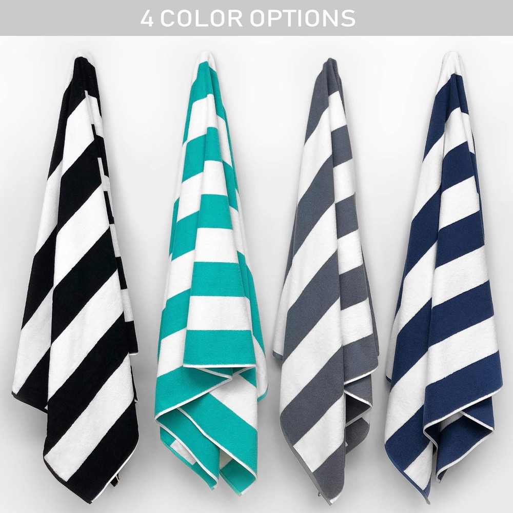 ⭐ OVERSIZED & COMFORTABLE- Designed for ultimate comfort, our extra large 40"x 72" (102 x 180cm) towels offer perfect coverage and noticeable absorbency on both sides. Quantity: One Towel Per pack. ⭐ PREMIUM QUALITY - Heavyweight 550 GSM 2lb. Designed for Premium buyers, this Classic Resort Cabana towel is the same available in many 5 Stars USA Hotels! ⭐ SOFT COTTON- Woven with 100% Premium cotton to make the towels Luxuriously extra soft, comfortable and ready to dry you quickly. ⭐ OEKO-TEX CERTIFIED: 40" x 72" (102 x 180 cm) and weighs 2.2 lbs per pc. To attain the international Oeko-Tex Standard 100 certification, the fabric has been tested and certified to be free from harmful levels of more than 100 substances known to be harmful to human health. It also means that the production cares about the environment being ecologic safe. ⭐ MACHINE WASHABLE: Wash with cold water and tumble dry on low heat. For best results, wash separately the first time to reduce lint transfer. DO NOT use bleach, fabric softeners, and iron.