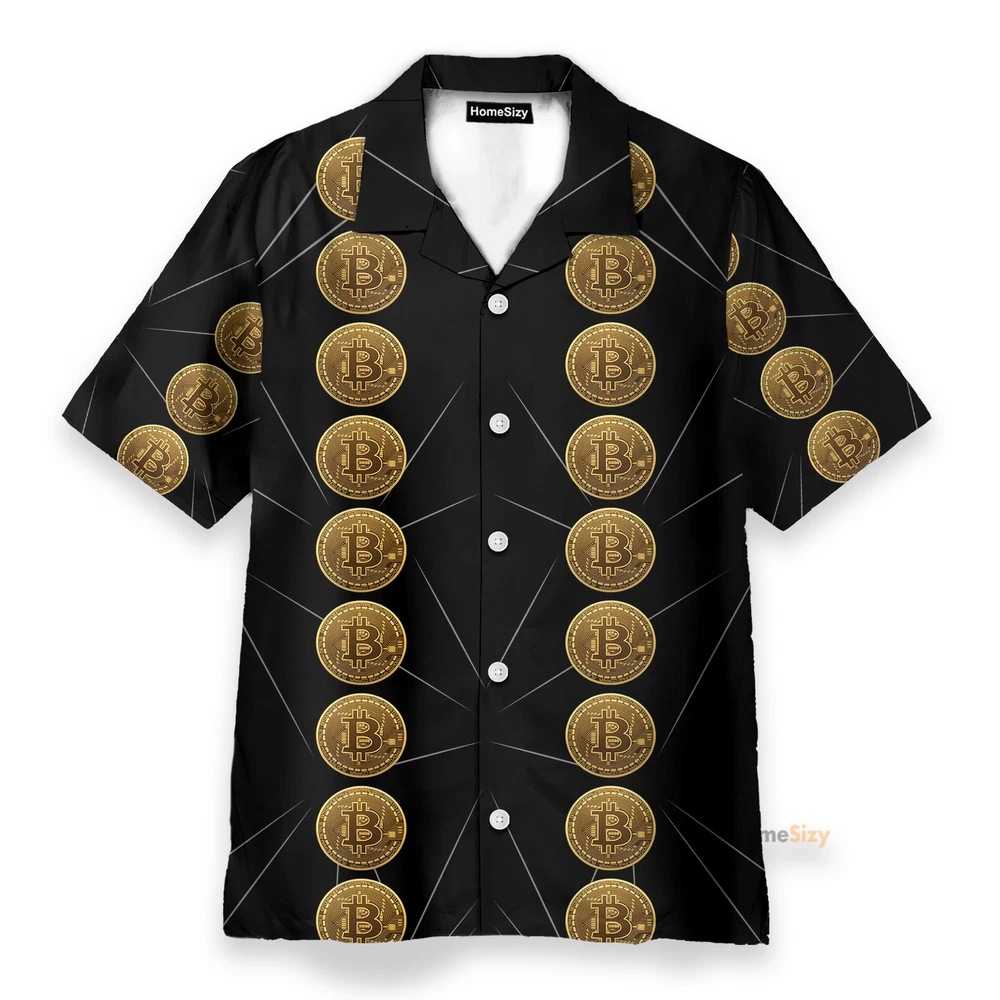 Luxury Golden Bitcoin Mens Buttons Up Shirts Hawaiian Shirt Beach Shorts