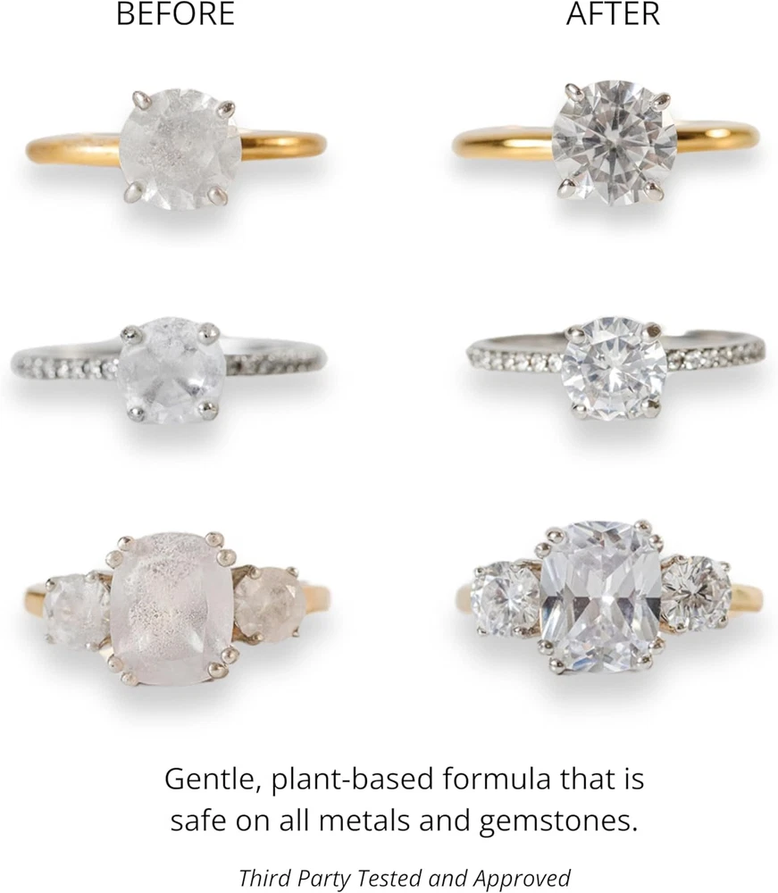 Jewelry Wash - Luxury Jewelry Cleaner Solution for All Types Including; Silver, Gold, Diamond, Fine and Costume Made in USA, 1 Pack First Ever Jewelry Wash: Shinery’s Radiance Wash is the perfect gift for women or anyone with some sparkle. A first-of-its-kind jewelry cleaner that effortlessly cleans and shines your jewelry every time you wash your hands - no need to remove your jewelry! A luxurious daily solution to effortlessly clean and shine your jewelry, from a female and veteran operated small business. Innovation in Jewelry Cleaning and Jewelry Care: All you need to do is massage over your jewelry and skin and then rinse. Use this premium cleaner daily by just washing your hands! This innovation in jewelry care is loved by celebrities, editors, and anyone who loves their jewelry to shine. Safe on All Metals and Gemstones: This non-toxic formula is made with plant-derived surfactants that remove dirt, oil, and beauty buildup from your jewelry, while leaving your hands feeling smooth and refreshed. Our formula is safe to use for all jewelry, gentle enough for daily use. Types of jewelry include (but not limited to), gold, platinum, silver, brass, costume, morganites, heirloom, diamonds, opals, turquoise, pearls, emeralds, ruby, sapphire, and so much more! Sparkling Clean: Use daily to keep your jewelry sparkling clean, whether it's for everyday wear or a special occasion. No need to take your jewelry off or soak your jewelry in harsh chemicals – simply wash your hands, paying specific attention to the jewelry you have on. Multi-Use and Plant Based: over 120 washes – equal to 4 months of daily use! Our plant-based wash is safe for both your diamonds and your skin because it is free of harsh chemicals and is non-toxic. Your hands will be soft and moisturized, and your ring will be sparkling clean. Product Description Plant-Based and Non-Toxic Our Radiance Wash is formulated with plant-derived surfactants that surround and remove dirt, oil, beauty buildup, and other residues from your jewelry. Easy to Use No need to take your jewelry off or soak it in chemicals. You can now have clean, sparkling jewelry every time you wash your hands with our Radiance Wash. Safe on All Metals and Gemstones Our formula was specifically designed to be safe to use on all metals and gemstones and is gentle for daily use. This includes diamonds, moissanites, morganites, opals, turquoise, pearls, emeralds, fashion jewelry, fine jewelry, and antique jewelry. Batteries required No Product Dimensions 2 x 2 x 7.5 inches Country of Origin USA Item Weight 5.9 ounces Department womens Style Name Radiance Wash 2.0 inches x 2.0 inches x 7.5 inches. Weight: 5.9 oz Shipping from the USA All of our products are shipped from the USA, ensuring quick delivery to your destination. Payment We offer the following payment methods: PayPal, credit card, bank transfer, and eBay's secure payment system. Free Shipping & Free Returns Shipping within the USA is FREE. Additionally, any return is absolutely free for you. Risk-Free Purchase You have the option to return an item within 30 days without any justification. We cover the return shipping costs! Fast Shipping We ship immediately upon receipt of payment. Generally, the package is delivered within 2-3 days in the USA. If it takes longer, we will contact you. Quality and Costs Made in Europe, USA, China No customs fees or additional charges Total satisfaction guarantee Invoice with declared VAT available upon request in .pdf format Feedback Your feedback is very important to us. After you pay for your purchase, you will automatically receive positive feedback from us.