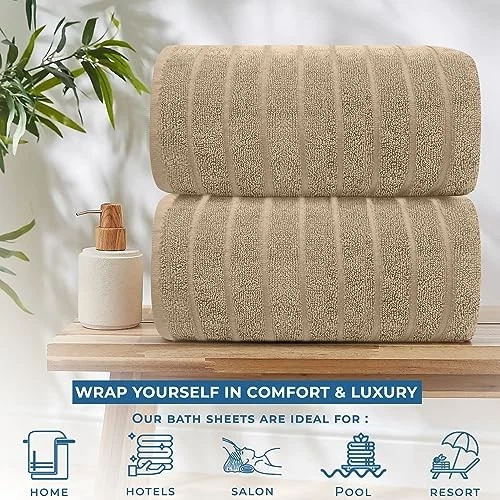 Return Policy Fast Delivery Trusted seller Luxury Jumbo Bath Sheets 2 Piece – 550 GSM (35x70 Inches) 100% Cotton Highly Absorbent Speed Breaker Design Bath Towel Set – Super Soft Towels for Bathroom, Hotel, Spa Tan Product Description ✅ ???? ??? ????? ???? ?????: Our premium-quality luxury bath towels boast an oversized and extra-large design, ensuring you have sufficient coverage and comfort. Crafted with care, our shower towels are manufactured using 100% ring-spun cotton, making them soft to the touch. Wrap yourself in the Luxury of Our bath towels large, creating a spa look in the comfort of your own home. ✅ ???????????? ???: Our big bath towel sets are like your all-in-one buddies – perfect for so many things! Whether you're at home, in a hotel, chilling by the pool, hitting the beach, or treating yourself to a spa day, our cotton bath towels are t for you. They're not just for drying off after a shower; they're your go-to for any kind of drying need. Soft, absorbent, and big, these towels are like the superheroes of drying. ✅ ???? ????????: Guess what's in this awesome set? Two really big extra large bath towels which are 35 by 70 inches – the perfect fit for all your daily towel needs. Imagine them like your comfy, oversized blankets for drying off after a bath or a workout. They're great for drying off after a shower, tossing in your gym bag, or just kicking back and relaxing. No matter what you're up to, these large towels have got you covered in comfort! ✅ ????? ??????? ??????: We've added a special Speed Breaker Design to make bathroom towel set look modern and stylish. The unique pattern not only makes them stand out but also keeps them super absorbent and soft, just the way you like it. So, you get the best of both worlds – a trendy look and the cozy feel you love in your bath sheets. Upgrade your bathroom with an awesome new design with our large bath towels. ✅???? ????????????: Always wash your bath sheet towels before use. After the first wash, these large thick bath towels will fluff up beautifully, and feel fresh and soft. Our oversized bath towels are specially processed to make the dryer take less time, thus saving time and energy costs. Keep The Lint Trap Clean. Some Lint May Be Observed in the First Wash. This Will Not Affect Performance of the Towel. Do not iron these terry towels. Shipping Returns Payment Shipping Shipping is FREE to all addresses other than APO/PO boxes in the lower 48 states. All our stock ships from US-based warehouses. Shipped via USPS or UPS (depending on location and package weight) Unless stated otherwise, all orders will ship within 24-72 hours of your payment being processed. Check our feedback to see the great reviews of FAST shipping we offer. Returns Seller does not accept returns Payment We currently accept payment via eBay managed payments only. Once payment is cleared, we will dispatch your shipment within 1-3 business days. Please refer to the "Shipping" tab for more information regarding shipping speed to your destination.
