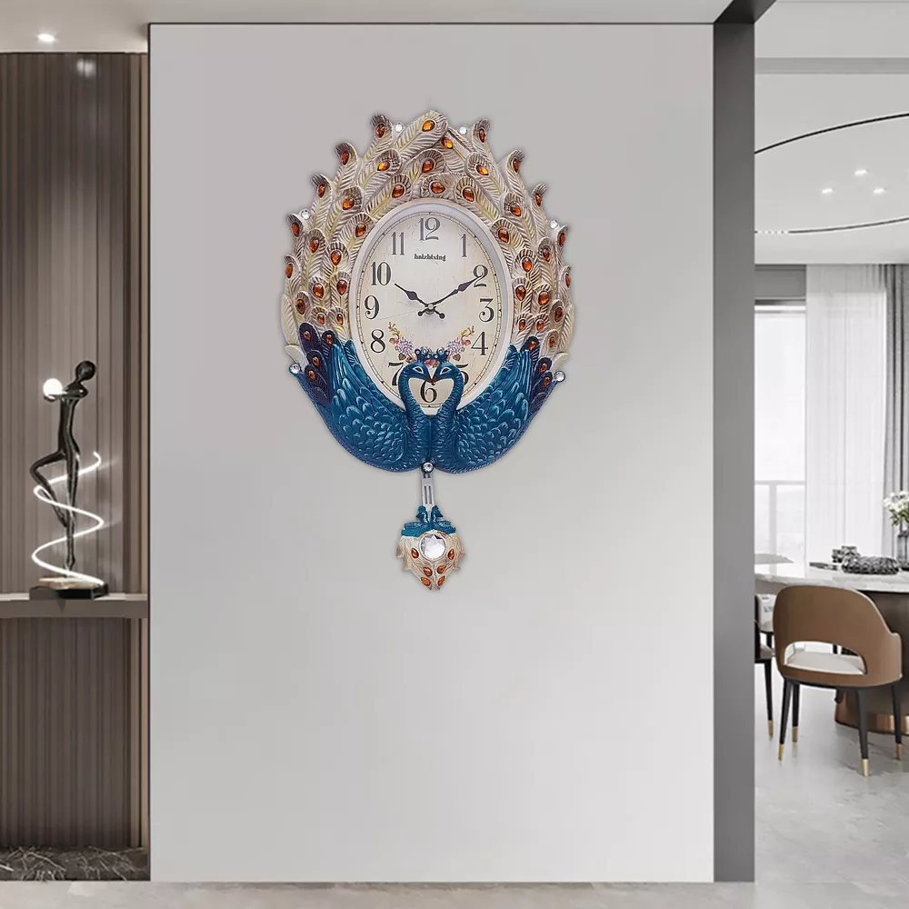 Luxury Large Wall Clock Peacock Wall Watch Living Room Home Decor Retro European Welcome to our store~ Clock Wall Decor for Living RoomTeal Silent Elegant Pendulum Clock with Luxury Crystal Large Peacock Clock Wall Decor ?? The luxurious wall-mounted Peacock pendulum clock presents a unique European style with elaborate carvings and a charming appearance. This uniquely shaped, richly colored wall pendulum clock adds glamour to your room like an elegant work of art. It uses a silent sweeping second movement, running at only 20-30 decibels, bringing you and your family a quiet and comfortable environmen ✔️Exquisite Appearance: The wall-mounted pendulum clock comes to life with lifelike animal feathers that show off its beauty. The unique appearance and brilliant colors create a luxurious, noble wall pendulum clock. ✔️High-quality Material: The wall-mounted pendulum clock is made of high-quality PVC. The excellent toughness and water resistance of PVC make this wall pendulum clock less prone to damage. ✔️Easy to Read: The wall-mounted pendulum clock adopts a larger digital clock dial, with clear and large numbers for easy reading. ✔️ Easy to Clean: The smooth clock plate and painted finish make this wall-mounted pendulum clock easy to clean. You just need to wipe it gently with a damp cloth. ✔️Fine Workmanship: The wall-mounted pendulum clock uses a professional injection molding process to make each feather lifelike, giving a wonderful sense of viewing. Its color uses a superb spray painting process to make it bright and beautiful. ✔️Silent Operation: The wall-mounted pendulum clock Features a silent sweeping seconds movement so you can say goodbye to the annoying ticking sound. The wall clock operates at only 20-30 decibels providing you with a quiet working and living environment. ✔️Accurate Timing: The quartz oscillator inside the quartz sweep seconds movement vibrates at a set frequency, so the timing is very accurate. ✔️Ideal Gift: The wall-mounted pendulum clock serves as a practical and beautiful decoration, it is perfect as a Christmas, Thanksgiving, housewarming, holiday, or birthday gift for your family and friends. ??Customer Service: We aim to provide quality products and services. If you have any problems, please feel free to contact us. We will reply and solve the problem for you as soon as possible. Application?? This wall-mounted pendulum clock is suitable for living rooms, hallways, bedrooms, and other places. It is not only a wall clock but also a good decoration. Specification ?? Material: PVC, Metal Color: Blue, Beige Style: European, Retro Time Display: Analog Indoor/Outdoor: Indoor Power Supply: 1AA Battery Mounting Type: Wall Mount Process: Injection Molding, Painting Operating Decibels: 20-30 DB Gross Weight: 1.8kg/3.96lbs Package Size: 50*41*13cm/19.68*16.14*5.1 Product Size: 37*60cm/14.57*23.62in Clock Plate Height: 46cm/18.11in Size of Glass: 19*25cm/7.48*9.84in Installation ?? 1.Direct the hook at the top holes, and make sure they match. 2.Tighten the screws to fix the hook. 3.Put the two stands into the bottom holes of the back cover. 4.Insert one AA battery. 5.Turn the handset knob of the movement to set the time. 6.Hang the pendulum on the hook carefully. 7.Just find a place to hang on this clock. Package Included ?? 1*Wall-mounted Pendulum Clock 1*Pendulum 2*AA Batteries All Accessories Needed for Installation Notes Please allow the slight color difference caused by the shooting light and 1-3cm error due to manual measurement. Please make sure you do not mind before you order. Payment Delivery details Terms of sales About us Contact us Payment We accept ebay payment 。 Fees such as import duties, taxes are not included in the item price or shipping costs. These charges are the buyer's responsibility. Delivery details Shipping: 2-9 working days to: USA Terms of sales We maintain high standards of excellence and strive for hundred percent customer satisfaction. Feedback is very important to us. We hope that you contact us immediately before you give neutral or negative feedback, so that we can address your concerns. It is impossible to address issues if we do not know about them! About us Your satis faction is our ultimate goal. We work hard to earn your trust and future business. Our certified technicians have tested each item before shipping. The unit comes with 1 year limited warranty on all manufacturing defects. a) If you receive a defective item, you may return it or ask for a discount. Please contact us within 14 days after you receive the package. b) What you returned must be intact and in its original packaging as re? u. Customer is responsible for shipping costs of the returned item. c) We will cover the cost of shipping back t with the shipping rate indicated in the registration page. We will send you a new unit or refund the full payment you paid. Thank you. Contact us Business Hour Business Hour: Monday To Friday: 8:30 AM to 5:00 PM (Beijing China time) Due to time zones, our reply to your questions may not be immediately. But within above working time, we will reply your email within 24 hours. If it's non-workdays, please kindly be patient and wait till Monday. Please contact us with ebay message. Please feel free to contact us if you have any questions. Monday To Friday: 8:30 AM to 5:00 PM (Beijing China time) Due to time zones, our reply to your questions may not be immediately. But within above working time, we will reply your email within 24 hours. If it's non-workdays, please kindly be patient and wait till Monday. Please contact us with ebay message. Please feel free to contact us if you have any questions. Feature 1 Compact Design,Unique Appearance,high reliability * Feature * Nice and Practical, High Quality Packaging Warranty Three years Features Fast shipping, High-quality material Highlights stable performance, Made of high quality material, Durable, Fast shipping, 3-year warranty Shipping notice Can no