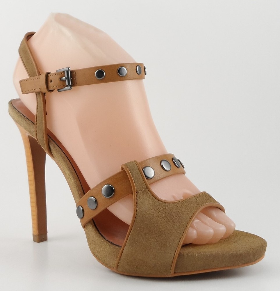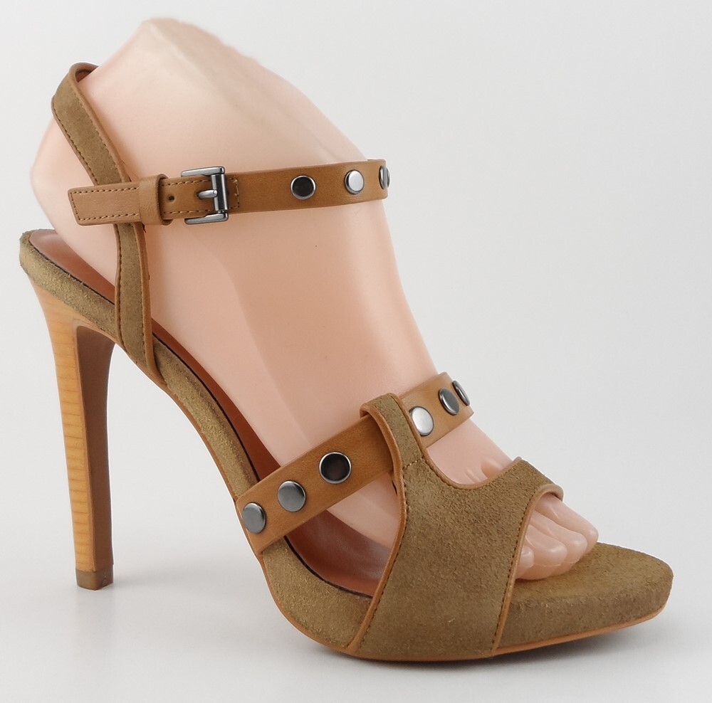 New/ clearance in original box Suede/ Man-made upper; Man-made lining; Man made sole Stacked heel measures 4 3/4"; Platform 1/2" * Decorative oxidized stud accents at straps Side buckle closure for easy on/ off Lightly padded footbed INSOLE 10 inches *Measurements are hand taken for every item we sell. Every item is carefully inspected to ensure that you receive a quality product. Designer Shoe Box guarantees this product is 100% Authentic