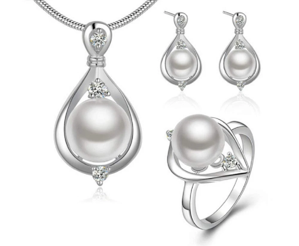 Lzz Fashion ladies 925 sterling silver jewelry set crystal and simulation pearl ring earrings necklace jewelry set with Swarovski crystal simulation white pearl Product Details Product Dimensions : 1.97 x 1.18 x 1.97 inches; 0.81 ounces Department : womens Date First Available : August 6, 2019 Manufacturer : Lzz Brand, Seller, or Collection Name: Lzz Metal stamp: Sterling Silver Metal: Sterling Silver, Zinc Material: Crystal Gem Type: Cubic Zirconia Item Length: 1.97 inches Clasp: Lobster Clasp Ring size: adjustable Number of stones: 4