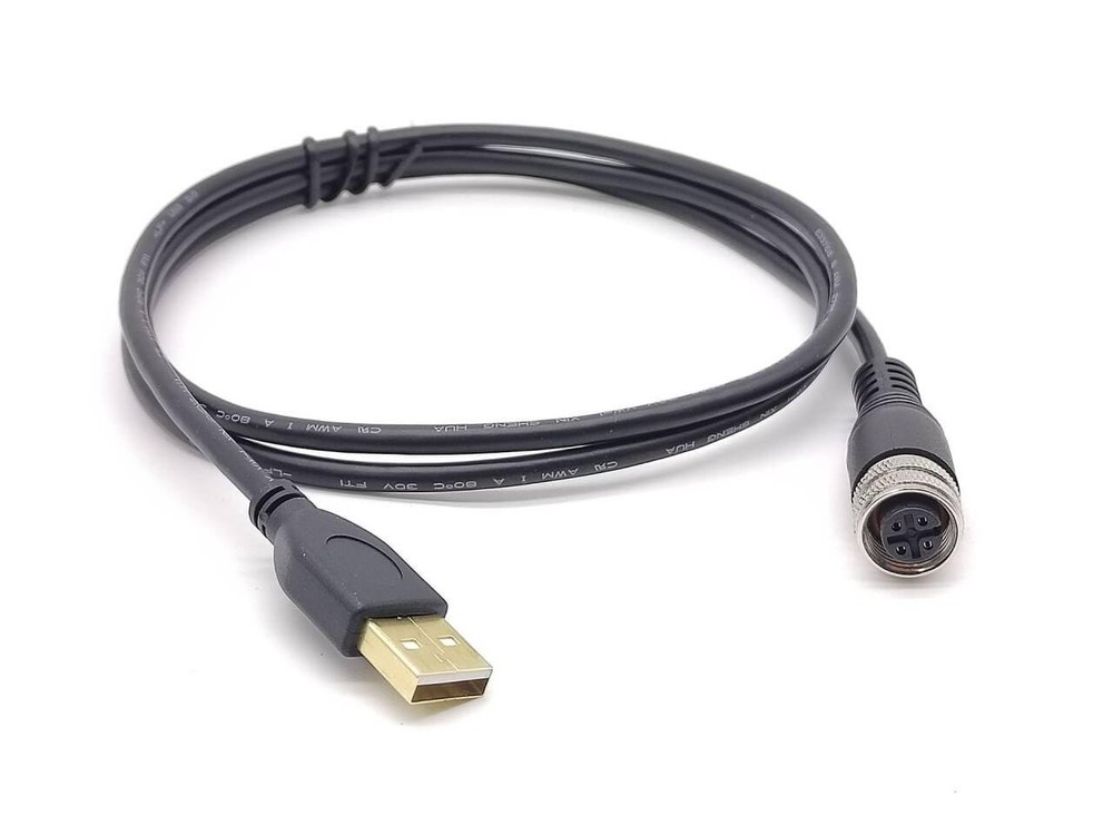 Appliance Miniature sensors Industrial camera Electrical bike Packaging, Labeling & Logistic Factory automation and fieldbus module Electrical Characteristics Rated current 1.5 A Contacts resistance ≤ 5 mΩ Insulation resistance ≥100 MΩ Rated voltage 30V Standard IEC 61076-2-101 Mechanical Characteristics Coupling thread locking Environmental Characteristics Ambient temperature -40°C ~ + 90°C IP rating IP67 Material art Material Finish Connector contacts Brass Gold Coupling nut/screw Brass Nickel nsert/ Housing TPU ------ Sealing Epoxy ------ M12 to USB Conversion: This cable features an M12 4-pin A-coded female connector to USB 2.0 male, providing seamless data transfer between industrial devices and USB-enabled systems. UL2725/2824 Cable Quality: Built with UL2725/2824 cable standards, this assembly ensures high durability, flexibility, and reliable signal transmission for both industrial and office environments. Plug-and-Play Design: The M12 to USB cable offers easy plug-and-play functionality, allowing quick and simple connectivity without the need for extra adapters or complex setups. 1-Meter Length for Flexibility: With a 1-meter cable length, this assembly provides enough flexibility for connecting devices in various setups, ensuring convenience in both compact and larger installations. Wide Application Range: Ideal for industrial automation, sensor connections, and data logging, this cable bridges the gap between rugged industrial devices and standard USB interfaces for versatile use.