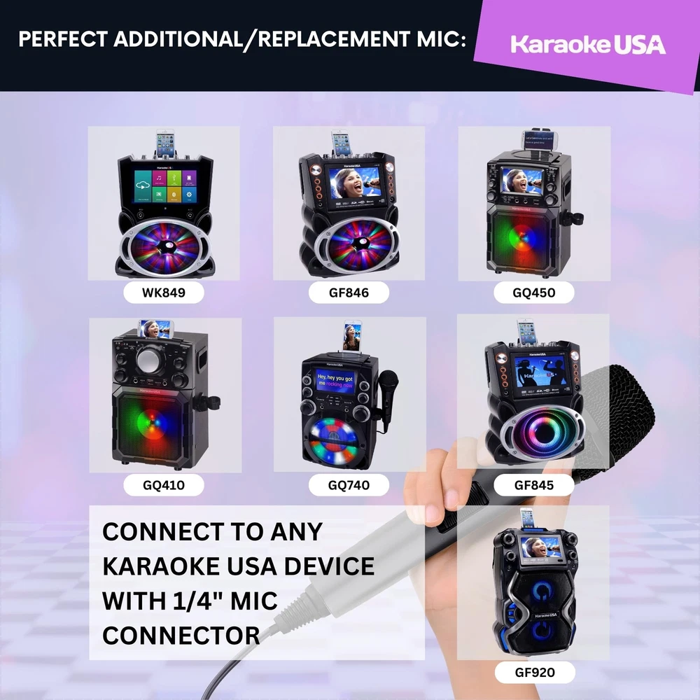 "M187 UPC: 879408007115 Title: Professional Dynamic Microphone (Corded) Features: Professional Dynamic Microphone is an economical solution to have an extra microphone on hand. It's also the perfect microphone to hand to your rowdy party guests instead of your expensive microphone. Professional Microphone (Corded) Microphone Type: Dynamic Frequency Response: 80Hz~11kHz Sensitivity: -72dB +/- 3dB (1kHz) Output Impedance: 620 ohms +30% (1kHz) Cord: 4.5mm x 6 feet 7 inches Connector: 6.3mm (1/4") Unbalanced Signal" Professional Microphone (Corded) Microphone Type: Dynamic Frequency Response: 80Hz~11kHz Sensitivity: -72dB +/- 3dB (1kHz) Output Impedance: 620 ohms +30% (1kHz)