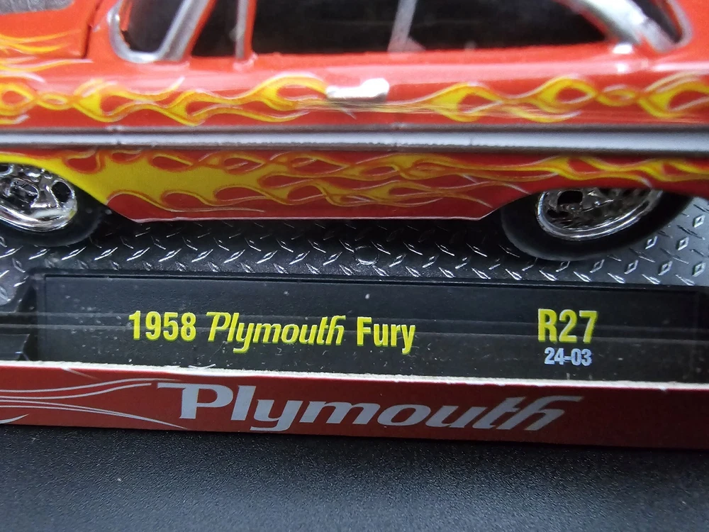 This M2 Machines 1958 Plymouth Fury diecast car is a must-have for any collector. The car is beautifully crafted with red paint and orange flames, making it a standout piece in any display. The 1:64 scale model is part of the Ground Pounders series and comes in a limited edition unopened box. The car features a Plymouth vehicle make and model Fury, with a vehicle year of 1958. It also includes aspects such as Autographed: No, Material: Diecast, and Features: With Case and Stand. This car is perfect for anyone who loves collecting diecast cars and wants a unique piece to add to their collection.