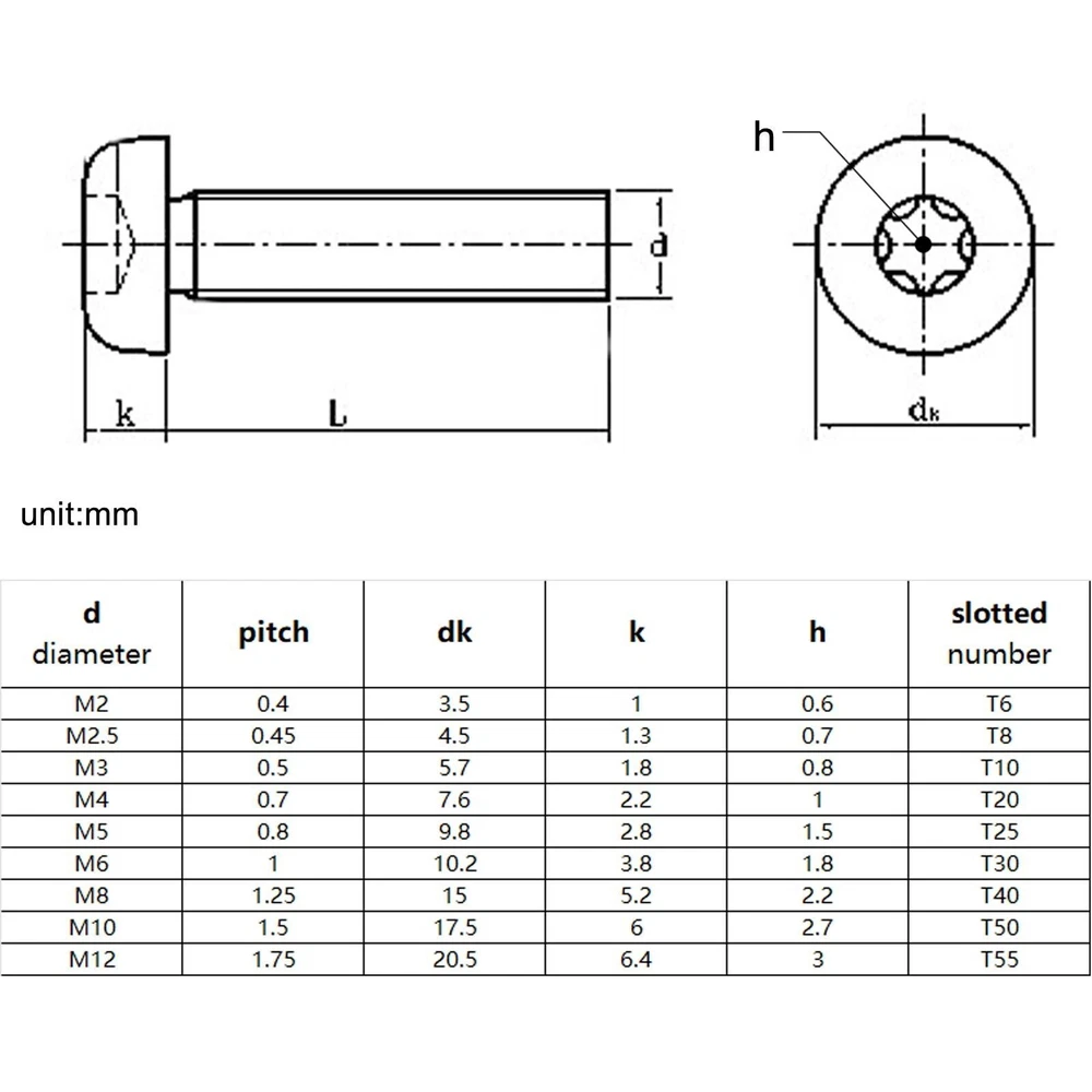 Material:304 (A2-70) stainless steel Size: d(thread diameter) x L(thread length) Metric thread diameter: M2 (2mm) / M2.5(2.5mm)/M3(3mm) /M4(4mm) / M5(5mm) M6(6mm) / M8(8mm) / M10(10mm) / M12 (12mm) Metric thread pitch: 0.4mm(M4) / 0.45(M2.5)/0.5mm(M3) /0.7mm(M4) / 0.8mm(M5) 1mm(M6)/ 1.25mm(M8) / 1.5mm(M10) / 1.75mm (M12) Thread length: 6mm-100mm On Dec 14, 2024 at 21:44:35 PST, seller added the following information: