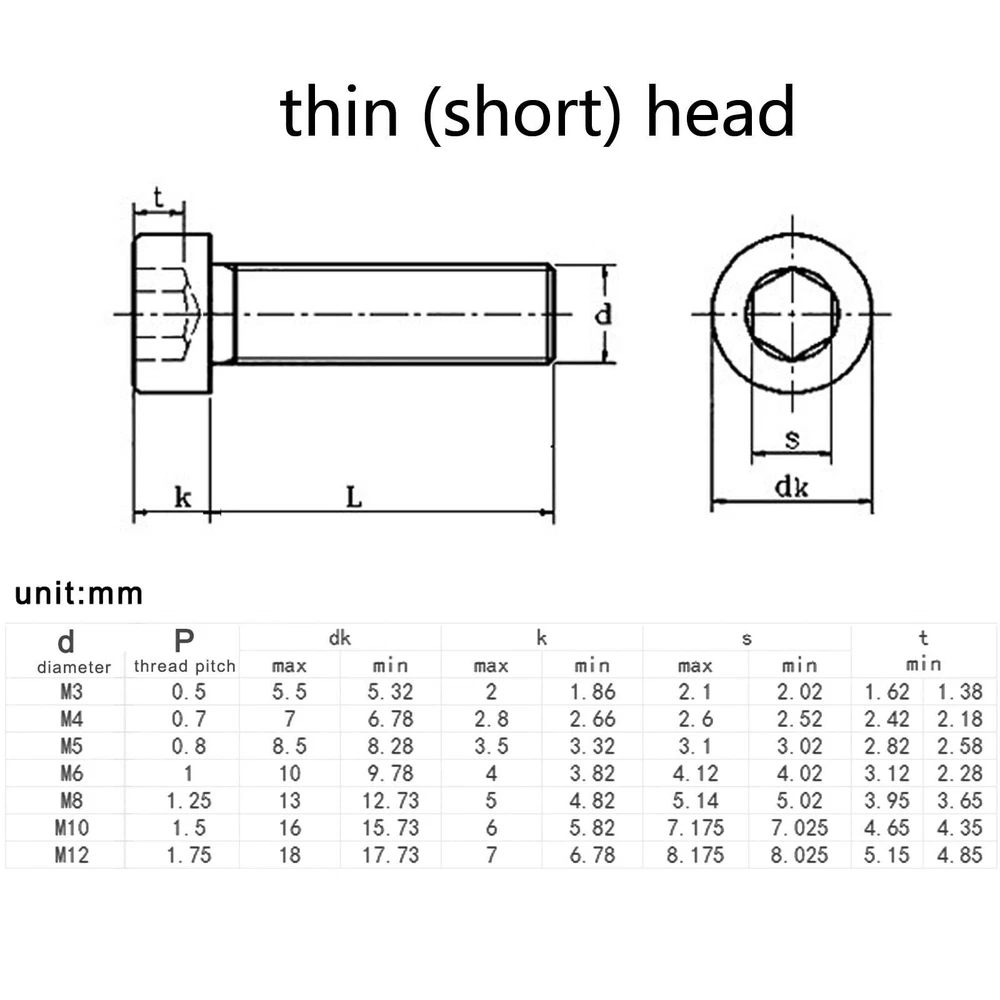 There are 10/50pcs high quality hex socket thin cap head or flat wafer head bolt Material:304 (A2-70) stainless steel Size: d(thread diameter) x L(thread length) Metric thread diameter: M3 (3mm)/M4 (4mm)/M5 (5mm)/M6 (6mm) Metric thread pitch: 0.5mm(M3)/0.7mm(M4)/0.8mm(M5)/1mm(M6) Thread length:4mm-50mm On Dec 14, 2024 at 23:16:48 PST, seller added the following information: