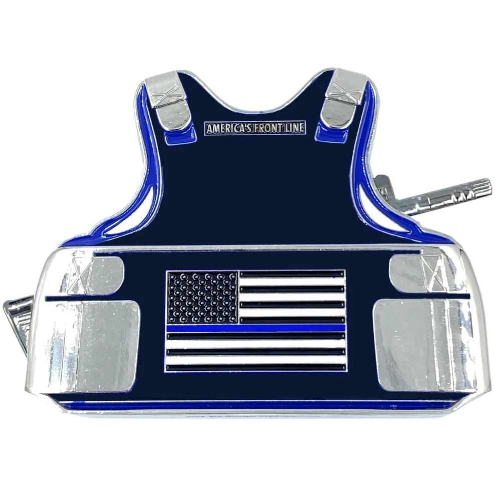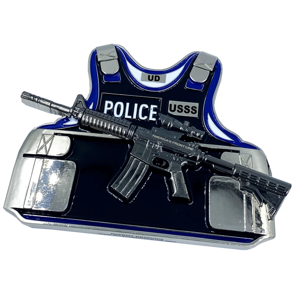 M4 Body Armor 3D self standing Challenge Coin Secret Service Thin Blue Line BL15 Large 4 inch challenge coin. Over a quarter inch thick with flat bottom so it can stand on its own without a display stand. Large 4 inch challenge coin. Over a quarter inch thick with flat bottom so it can stand on its own without a display stand. eBay integration by