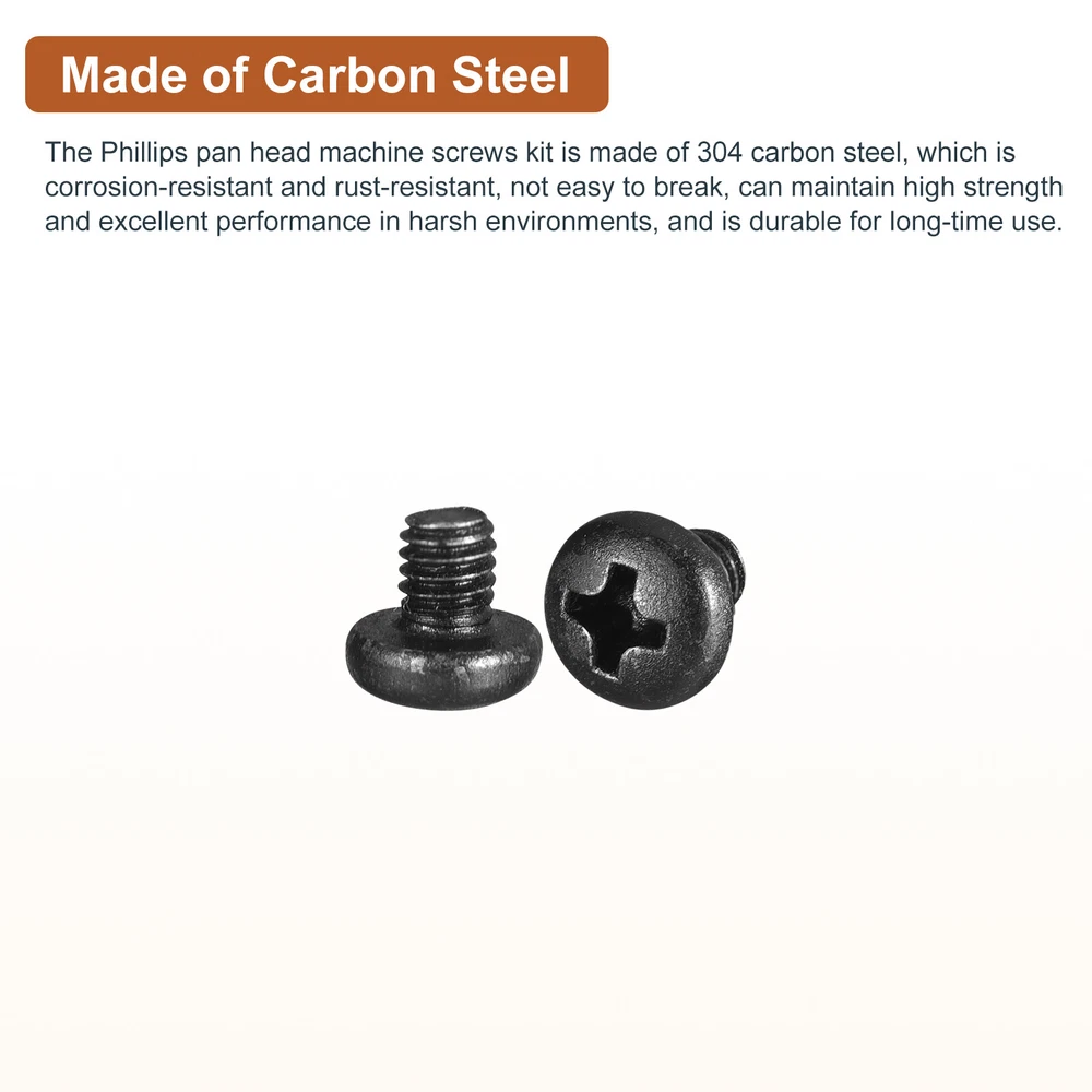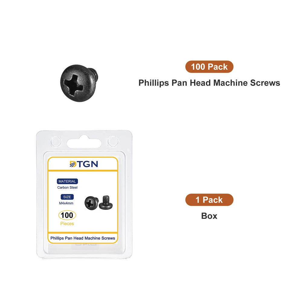 Document Product Details:Material: Carbon SteelThread Size: M4x4mm(D*L)Package Content: 100pcs x Phillips Pan Head Machine ScrewsMaterial- The Phillips pan head is made of carbon steel, corrosion-resistant, not easy to break, reliable, sturdy, and durable for long-time use.Feature- It is driven by a cross groove, with uniform force, easy to lock. The thread is very smooth, sharp, and accurate. Uniform force, not easy to slip, and convenient and quick to use.Application- Widely used in furniture, precision machinery industry, classified instruments, instruments, electronic products, printed projects, household appliances, communication products, locks, lamps, lights, etc. Pan head machine screws are great for both indoor and outdoor uses.Notice - The bolts kit comes with a box, easy to access and store. M4x4mm(DxH) Phillips Pan Head Machine Screws 100pcs Carbon Steel Product Details: Material: Carbon Steel Thread Size: M4x4mm(D*L) Package Content: 100pcs x Phillips Pan Head Machine Screws Material - The Phillips pan head is made of carbon steel, corrosion-resistant, not easy to break, reliable, sturdy, and durable for long-time use. Feature - It is driven by a cross groove, with uniform force, easy to lock. The thread is very smooth, sharp, and accurate. Uniform force, not easy to slip, and convenient and quick to use. Application - Widely used in furniture, precision machinery industry, classified instruments, instruments, electronic products, printed projects, household appliances, communication products, locks, lamps, lights, etc. Pan head machine screws are great for both indoor and outdoor uses. Notice - The bolts kit comes with a box, easy to access and store. Hot Item Payment 1.We accept eBay payment . 2.Payment must be received within 7 business days of auction closing. Shipping 1.We ship to your eBay or Paypal address. Please make sure your eBay and Paypal address is correct before you pay. 2.Items will be shipped within 1-3 business day when we received payment. 3.Delivery time depends on destination and other factors. Description Policy M4x4mm(DxH) Phillips Pan Head Machine Screws 100pcs Carbon Steel Product Details: Material: Carbon Steel Thread Size: M4x4mm(D*L) Package Content: 100pcs x Phillips Pan Head Machine Screws Material - The Phillips pan head is made of carbon steel, corrosion-resistant, not easy to break, reliable, sturdy, and durable for long-time use. Feature - It is driven by a cross groove, with uniform force, easy to lock. The thread is very smooth, sharp, and accurate. Uniform force, not easy to slip, and convenient and quick to use. Application - Widely used in furniture, precision machinery industry, classified instruments, instruments, electronic products, printed projects, household appliances, communication products, locks, lamps, lights, etc. Pan head machine screws are great for both indoor and outdoor uses. Notice - The bolts kit comes with a box, easy to access and store. Hot Item Payment 1.We accept eBay payment . 2.Payment must be received within 7 business days of auction closing. Shipping 1.We ship to your eBay or Paypal address. Please make sure your eBay and Paypal address is correct before you pay. 2.Items will be shipped within 1-3 business day when we received payment. 3.Delivery time depends on destination and other factors.