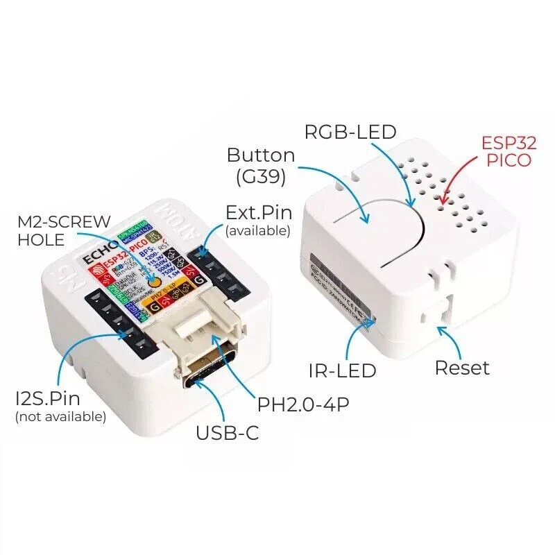 Store Categories Store Categories Business & Industrial Electronics eBay Motor Fashion Books, Movies & Music Collectibles & Art Home & Garden Sporting Goods Toys & Hobbies Health & Beauty Other Product View Detail M5Stack ATOM Echo Programmable Smart Speaker RGB LED Display Built-in ESP32 Bluetooth WiFi IoT for Arduino Description: - ATOM ECHO is a Programmable Smart Speaker based on the M5ATOM design. Its form factor is very small, its dimensions are only 24 x 24 x 17mm. Music can be played using the BT capabilities of the ESP32 from a mobile phone or tablet. The device could be programmed to access AWS, Baidu and other cloud platforms, using the built-in microphone and speaker for voice interaction, so that ATOM ECHO has certain AI capabilities, realizing voice control, story telling, Internet of things and other functions. The speaker is embedded with an RGB LED (SK6812), which can visually display the connection status. In addition to being used as a BT speaker, it still has the control ability of Atom series.Screw hole on the back is convenient for users to fix. Features: - Light and small - Support STT services - Based on ESP32, Support A2DP - 2.4G Wi-Fi IEEE 802.11b/g/n - Built-in microphone and speaker - RGB LED status display indication - GROVE extension interface - Record and playback - Programmable key - Programming platform: for Arduino/ESP-IDF/ADF Application: - BT speaker - Voice control - for IoT More Details: - https://docs.m5stack.com/en/atom/atomecho More Project Usage: - https://lemariva.com/blog/2020/06/m5stack-introducing-new-m5stack-atom-echo - https://www.youtube.com/watch?v=pfINimJDti0 - https://www.eenewseurope.com/news/miniature-programmable-smart-speaker-only-24x24x17mm - https://www.cnx-software.com/2020/06/05/m5stack-atom-echo-coin-sized-bluetooth-speaker-is-powered-by-esp32-pico-d4-sip/ - https://www.youtube.com/watch?v=EFce9XoiUgE&feature=emb_logo - https://www.hackster.io/PeterN/atom-echo-first-experiments-df6f12 - https://github.com/lemariva/uPyM5Echo Package Included: - 1 x ATOM ECHO Note: - This product does not recommend playing bass music for long time. Feedback Payment Shipment About us Feedback We appreciate positive feedback . we always try our best to service our customers . so if you have ant question ,PLEASE DON’T HESITATE TO TELL US, we are always here to offer help . Payment We prefer PayPal .For purchasing multiple items , please contact us for a combined invoice . generally we would like to receive payment thin 48 hours if . Shipment We provide airmail service with good package . The items will be shipped within the nest 2 business days after we received the payment . when you buy multiple items ,your shipping cost will be combined with discount . SHIPPING TIME (weekends/holidays excluded) Country Name Shipping Time Country Name Shipping Time USA/Canada 10 -15d Spanish/Portugue 10-25d East/South Asia 10 -15d France/West Asia 10-25d United Kingdom 10 -20d Italy 10-30d Australia/New Zealand 10 -15d West Asia/Middle East 15-25d Most Country of West/North Europe 10-20d South America and Africa 15-30d East /Middle Europe/Russia 10-25d About us NEW, GOOD QUALITY, ORIGINAL PACKAGE LARGE STORE AND THE LOWEST PRICE NO-QUESTION-REFUND, FOR LARGE QUANTITY ,OFFER BETTER PRICE, ORIGINAL PACKING(TAPE REEL/TUBE/TRAY) We specialize in electronic components . ICs, Capacitors, Diodes, Resistors, LEDs, Transistors, and so on. Especially in Hard To Find Parts . we only sell NEW , ORIGINAL parts . please buy with confidence .We offer NO-QUESTION-REFUND go to my store