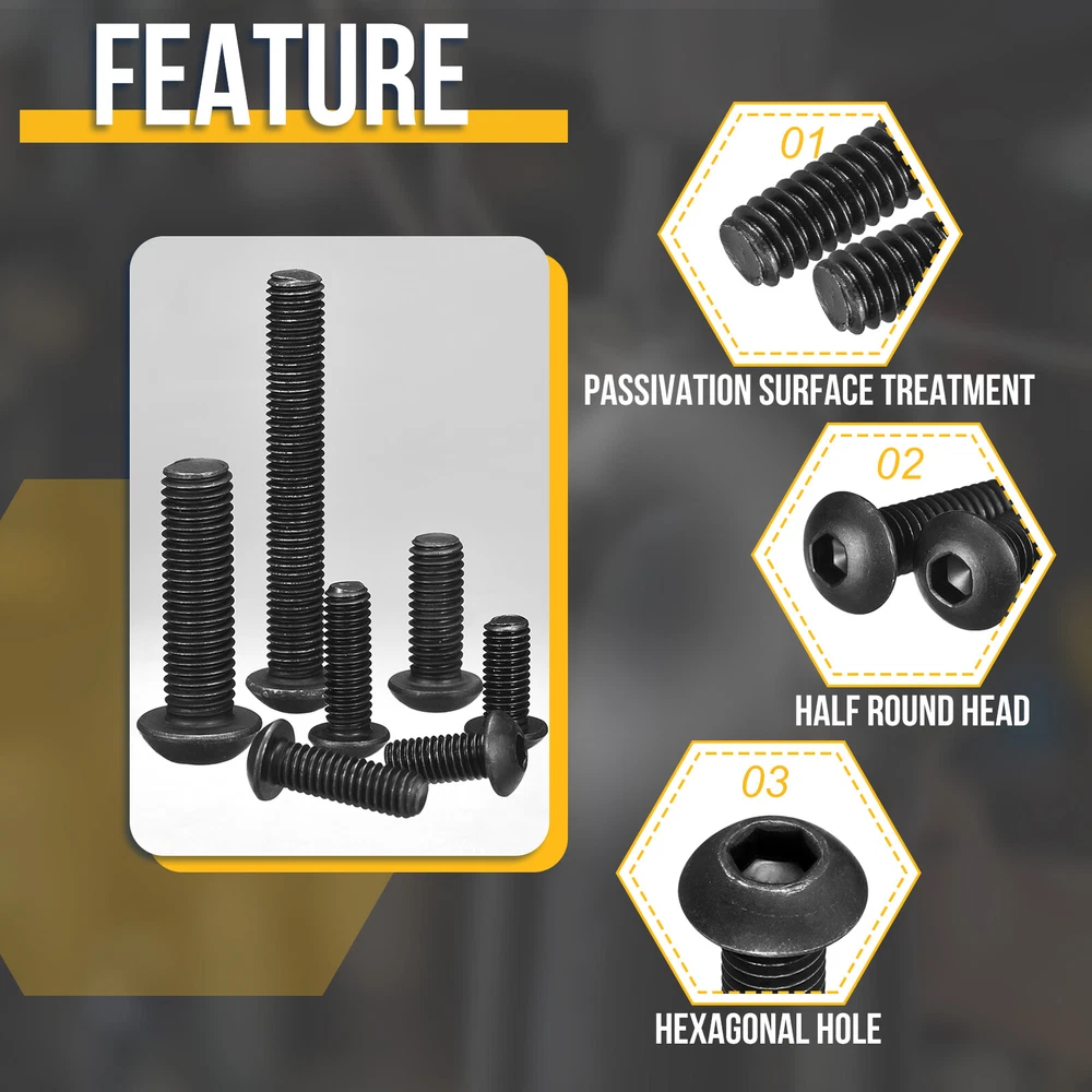 Document Product Details:Color: BlackMaterial: Carbon SteelFinish: Black OxideThread Type: Coarse ThreadThread Dia.: M6Thread Pitch: 1mm/0.04"Thread Length: 25mm/0.98"Head Dia.: 10.5mm/0.41"Head Thickness: 3.3mm/0.13"Hexagon Width: 4mm/0.16"Package Content: 25pcs x Button Head Hex Socket ScrewsMaterial - Constructed with carbon steel material with black oxide treatment, the hex socket cap screw is of stronger durability, has a bright appearance, is not easier to deform or corrode, and has a long service life than other surface finishes.Feature - The button socket head cap screw is designed with an inner hex drive style and pan head, providing a higher torque and clamping force, as well as offering a wider bearing surface and high tensile strength. Application - Good replacement parts and construction fasteners for cars, bicycles, communication equipment, and ship assembly.Installation - To access this hex drive screw, you will need to use a hex wrench to tighten or loosen it. The socket button head design enhances torque capabilities, allowing for greater clamping force. For optimal results, it is recommended to use a retaining washer to lock the hex drive in place securely. M6-1x25mm Button Head Socket Cap Screws 25Pack Carbon Steel Black Product Details: Color: Black Material: Carbon Steel Finish: Black Oxide Thread Type: Coarse Thread Thread Dia.: M6 Thread Pitch: 1mm/0.04" Thread Length: 25mm/0.98" Head Dia.: 10.5mm/0.41" Head Thickness: 3.3mm/0.13" Hexagon Width: 4mm/0.16" Package Content: 25pcs x Button Head Hex Socket Screws Material - Constructed with carbon steel material with black oxide treatment, the hex socket cap screw is of stronger durability, has a bright appearance, is not easier to deform or corrode, and has a long service life than other surface finishes. Feature - The button socket head cap screw is designed with an inner hex drive style and pan head, providing a higher torque and clamping force, as well as offering a wider bearing surface and high tensile strength. Application - Good replacement parts and construction fasteners for cars, bicycles, communication equipment, and ship assembly. Installation - To access this hex drive screw, you will need to use a hex wrench to tighten or loosen it. The socket button head design enhances torque capabilities, allowing for greater clamping force. For optimal results, it is recommended to use a retaining washer to lock the hex drive in place securely. Hot Item Payment 1.We accept eBay payment . 2.Payment must be received within 7 business days of auction closing. Shipping 1.We ship to your eBay or Paypal address. Please make sure your eBay and Paypal address is correct before you pay. 2.Items will be shipped within 1-3 business day when we received payment. 3.Delivery time depends on destination and other factors. Description Policy M6-1x25mm Button Head Socket Cap Screws 25Pack Carbon Steel Black Product Details: Color: Black Material: Carbon Steel Finish: Black Oxide Thread Type: Coarse Thread Thread Dia.: M6 Thread Pitch: 1mm/0.04" Thread Length: 25mm/0.98" Head Dia.: 10.5mm/0.41" Head Thickness: 3.3mm/0.13" Hexagon Width: 4mm/0.16" Package Content: 25pcs x Button Head Hex Socket Screws Material - Constructed with carbon steel material with black oxide treatment, the hex socket cap screw is of stronger durability, has a bright appearance, is not easier to deform or corrode, and has a long service life than other surface finishes. Feature - The button socket head cap screw is designed with an inner hex drive style and pan head, providing a higher torque and clamping force, as well as offering a wider bearing surface and high tensile strength. Application - Good replacement parts and construction fasteners for cars, bicycles, communication equipment, and ship assembly. Installation - To access this hex drive screw, you will need to use a hex wrench to tighten or loosen it. The socket button head design enhances torque capabilities, allowing for greater clamping force. For optimal results, it is recommended to use a retaining washer to lock the hex drive in place securely. Hot Item Payment 1.We accept eBay payment . 2.Payment must be received within 7 business days of auction closing. Shipping 1.We ship to your eBay or Paypal address. Please make sure your eBay and Paypal address is correct before you pay. 2.Items will be shipped within 1-3 business day when we received payment. 3.Delivery time depends on destination and other factors.