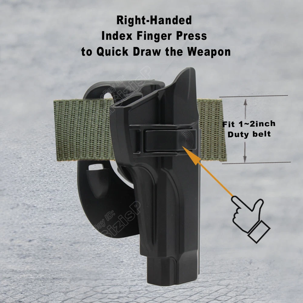 High Quality Military & Police Grade Polymer OWB Holster Specially Designed For Fast Draw During Duty Or Shooting Competition. Item Description: Tactical Outside Waistband Holster for. Holster fit Beretta Beretta 92 9mm Luger Beretta 92FS 4.9” 9mm Luger Beretta 92FS Inox 4.9” 9mm Luger Beretta M9 4.9” 9mm Luger Beretta M9_22 .22 LR Beretta Compact 92S Full Size 9mm Luger Beretta Compact 92S Centurion 9mm Luger Beretta 92G ELITE LTT 9mm Luger Holster fit Taurus PT92 9mm Luger Does not fit: Taurus PT92 AF-D / AF-S (due to the rail being blocked). Beretta 92FS Brigadier / Brigadier Inox / Compact / Compact Inox, 92A1, 96A1, M9A1, M9A3, M9A4, M9A1_22. (It perfect fit the gun with Optic Mount Mini Sight above on the end of the barrel, But without laser and no embedded chassis, and no flashlight style ) Materials & Durable Made of durable high-tech polymer materials - Stronger than leather will wear out, the polymer holster will not wear out and get flimsy.Adapt to every environment High S afety I ndex-finger release for quick release button (Level II retention) An audible click lock system ensures knowing when your weapon is securely holstered A djustable E asily set your paddle /belt cant 0-60 degrees according to your preference with the Allen key Ease And Comfort Easy on / Easy off- No need to undo your belt every time you wear your holster.Sweat-proof- Protect your weapon from salty perspiration and not absorb sweat. In the Package: · 1*Holster with Paddle Attachment · 1*Allen Key Shipping: Ships same day or next except Sundays and Holidays ! Free shipping! Ship by USPS First Class Package. 100% MONEY BACK GUARANTEE. Any question please be free to contact with us .Thanks!