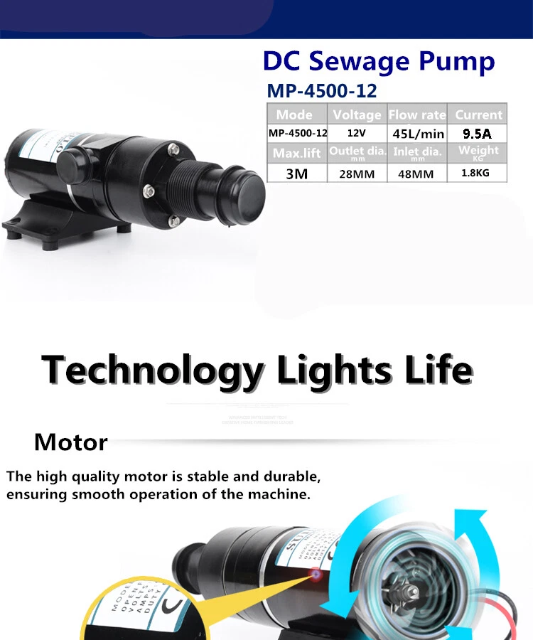 Package Included: 1 x Sewerage Pump MACERATOR PUMP 12V- Waste/Toilet/Sewerage/Water/Marine/Boat/Caravan/RV 9.5A Welcome to enjoybuya~ 12V MACERATOR PUMP - Waste/Toilet/Sewerage/Water/Marine/Boat/Caravan/RV 12A USA Specifications: Impeller structure: Open impeller Impeller inhalation: Single suction Number of impeller :6 Drainage outlet diameter: 28mm Drainage inlet diameter:48mm Flow rate:45L/min Maximum lift: 3M Voltage:12V Current: 9.5A Features: -Applicable scope: RV, yacht, toilet, sewage, industry, sea. -Full copper movement, powerful -Copper coil, long life -Large Flow -Flexible impeller -Reinforced base, wear resistance, not easily deformed, rusty -Copper core power cord, more secure -Convenient installation, stable performance, high efficiency and energy saving -With double blade design, impurities in sewage can be easily discharged -Built-in thermal protection device Package Included: 1 x Sewerage Pump Dear customer, The pictures below are mainly to show the characteristics of our products, and the colors are slightly different from our physical pictures. The window image is what our real product looks like. Thank you for your love and support for our products. Payment Delivery details Terms of sales About us Contact us Payment We accept ebay payment 。 Fees such as import duties, taxes are not included in the item price or shipping costs. These charges are the buyer's responsibility. Delivery details Shipping: 2-9 working days to: USA Terms of sales We maintain high standards of excellence and strive for hundred percent customer satisfaction. Feedback is very important to us. We hope that you contact us immediately before you give neutral or negative feedback, so that we can address your concerns. It is impossible to address issues if we do not know about them! About us Your satis faction is our ultimate goal. We work hard to earn your trust and future business. Our certified technicians have tested each item before shipping. The unit comes with 1 year limited warranty on all manufacturing defects. a) If you receive a defective item, you may return it or ask for a discount. Please contact us within 14 days after you receive the package. b) What you returned must be intact and in its original packaging as re? u. Customer is responsible for shipping costs of the returned item. c) We will cover the cost of shipping back t with the shipping rate indicated in the registration page. We will send you a new unit or refund the full payment you paid. Thank you. Contact us Business Hour Business Hour: Monday To Friday: 8:30 AM to 5:00 PM (Beijing China time) Due to time zones, our reply to your questions may not be immediately. But within above working time, we will reply your email within 24 hours. If it's non-workdays, please kindly be patient and wait till Monday. Please contact us with ebay message. Please feel free to contact us if you have any questions. Monday To Friday: 8:30 AM to 5:00 PM (Beijing China time) Due to time zones, our reply to your questions may not be immediately. But within above working time, we will reply your email within 24 hours. If it's non-workdays, please kindly be patient and wait till Monday. Please contact us with ebay message. Please feel free to contact us if you have any questions. *Highlights* Compact Design,,Convenient Use Country/Region of Manufacture Unknown shipping notice Can't not ship to Puerto Rico,Alaska/Hawaii Brand Unbranded Manufacturer Part Number Does Not Apply Impeller structure Open impeller Impeller inhalation Single suction Number of impeller 6 Drainage outlet diameter 28MM Drainage inlet diameter 48MM Flow rate 45L/min Maximum lift 3M / 9.8FT Current 9.5A Voltage 12V UPC Does not apply