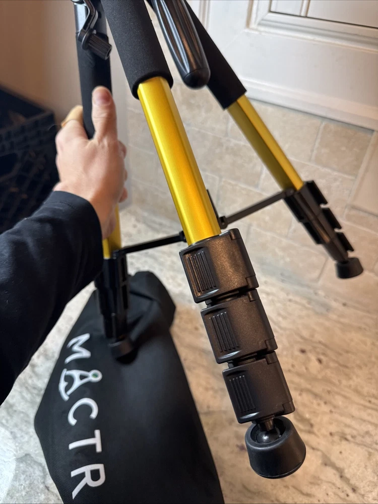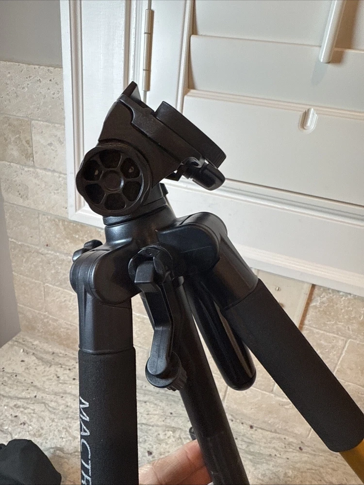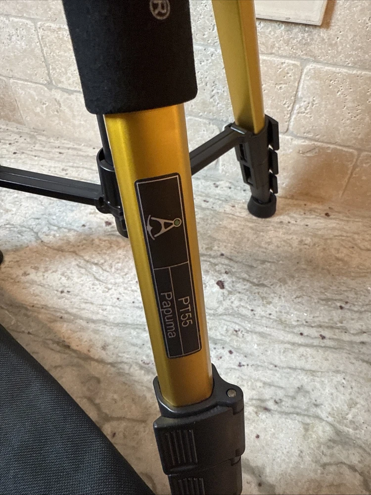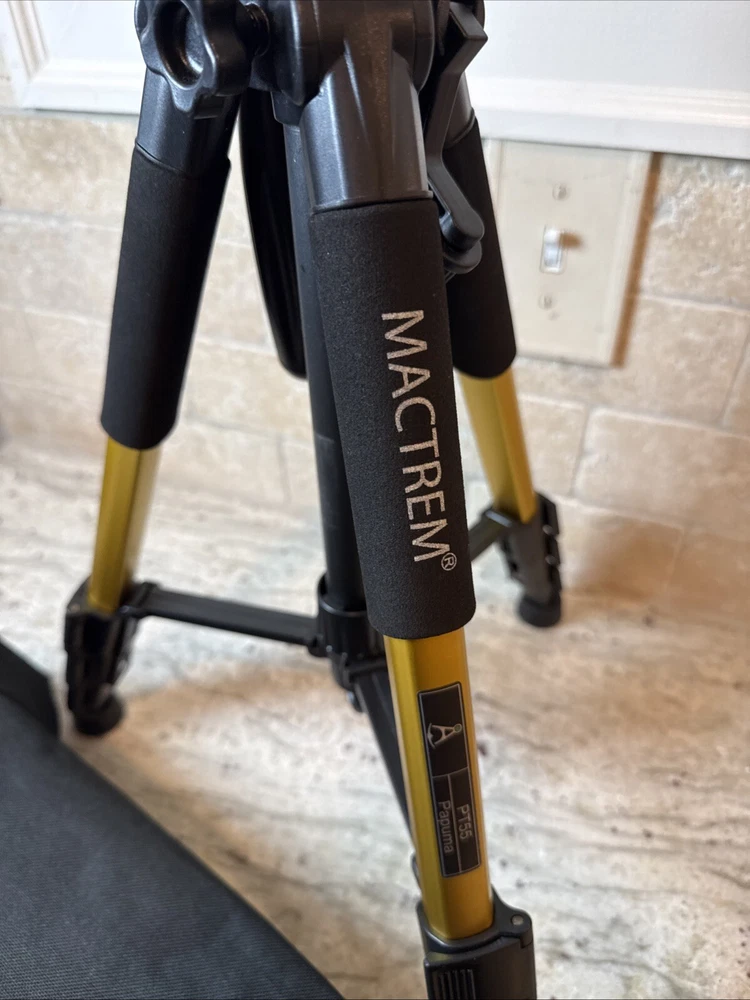 This MACTREM Papuma 55" Camera Tripod PT55 is a reliable support for your camera during photography or videography sessions. It features a 3-way pan-head mount that allows you to easily adjust the camera's angle and a maximum load capacity of 11 lbs, making it suitable for professional photographers and videographers. The tripod has adjustable legs with leg angle adjustment, a rubber foot, and a pan handle for easy operation. Additionally, the tripod comes with a bag for easy transport and storage. Its features include a 360-degree rotation, foldable design, and a head type of pan/tilt head. This camera tripod is made of aluminum and has a weight of 2.6 lbs. It is suitable for cameras and camcorders and is perfect for photographers and videographers who require a stable support for their equipment.