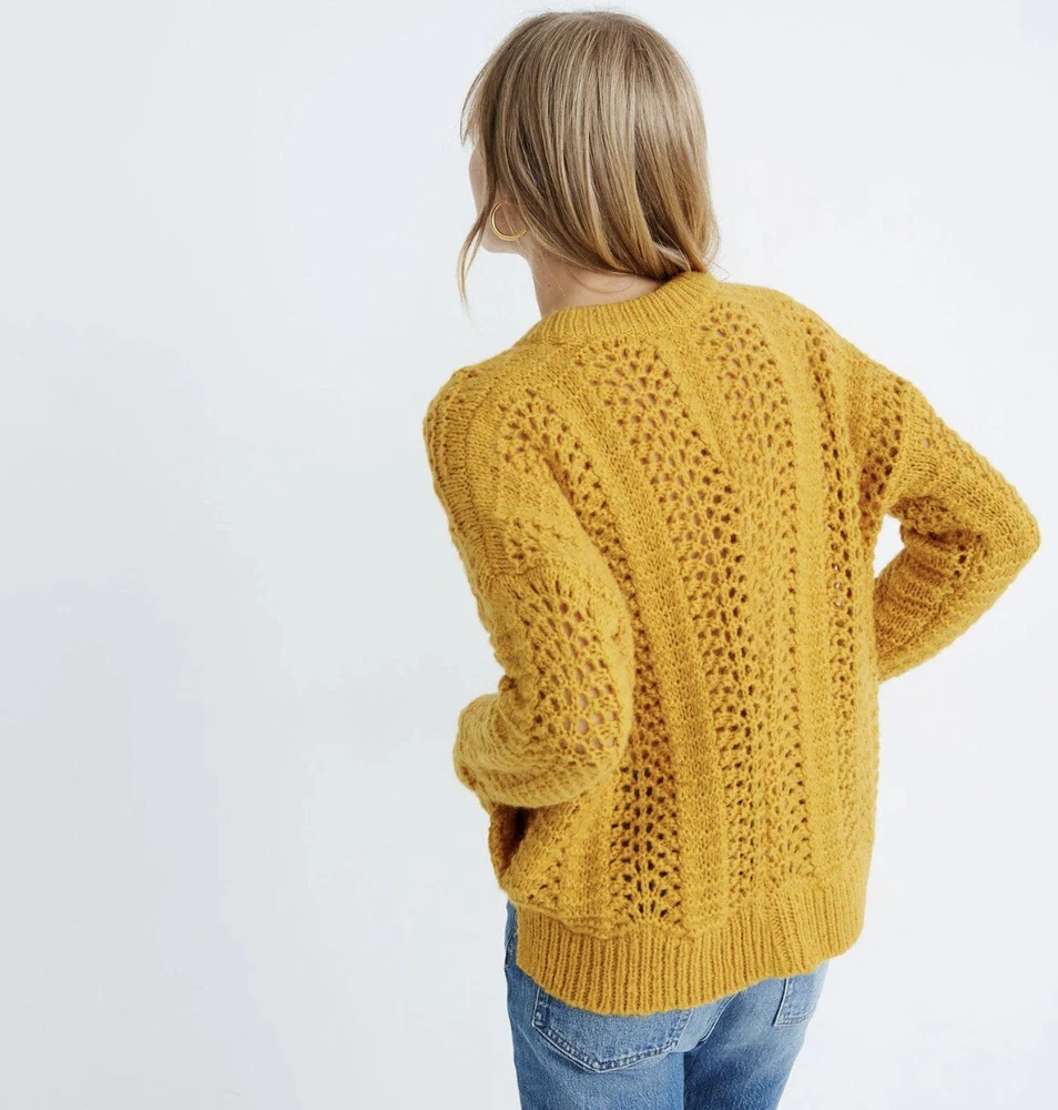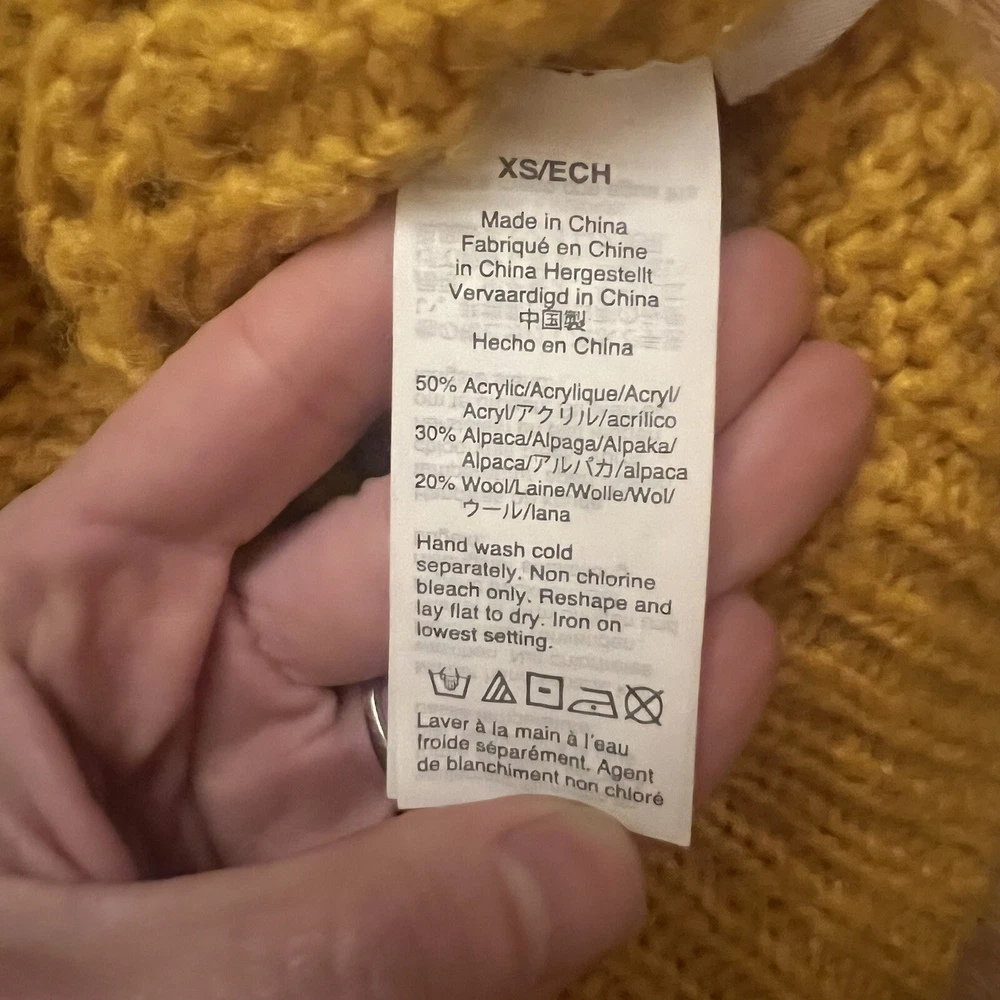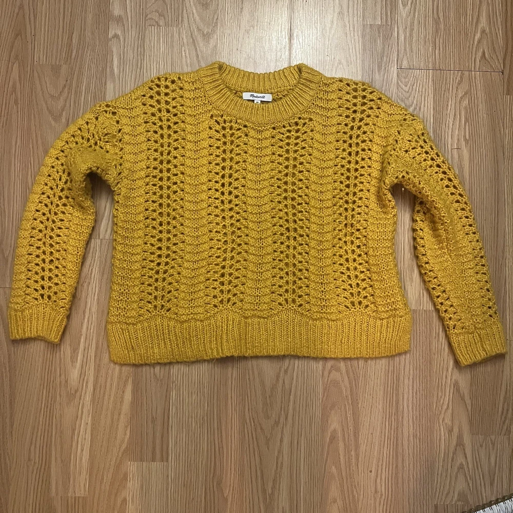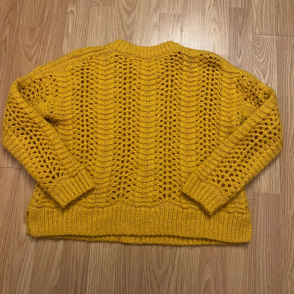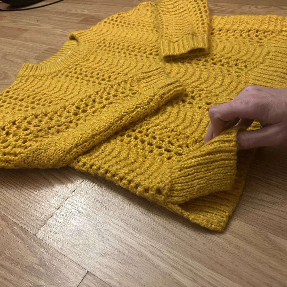 Perfect condition, no flaws. Mustard yellow, open knit crew neck pullover sweater. Alpaca wool blend. Super comfortable and cozy. Women’s size XS, a bit oversized. Measurements: Total length: 21 ” Underarm to underarm: 20” Indie Y2K Bohemian Boho Y2K Style Party Going Out Special Occasion Hippie Christmas Holiday Gifting Classic Retro Outdoors Winter Preppy Shipping same day or next business day ALWAYS. Smoke free home. If you have any questions at all, do not hesitate to ask!