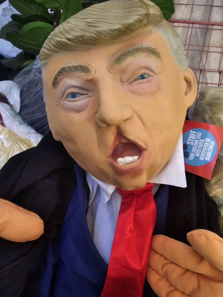 The Donald Trump costume by Morphsuits is a one-piece outfit designed for adults and big kids. It features a multi-color design that mimics the signature style of President Donald J. Trump, including the iconic MAGA hat. This Halloween-themed costume is made in the United States and is perfect for those looking to dress up in a humorous and recognizable outfit. Whether for a fancy dress party or just for fun, this costume is sure to make a bold statement.
